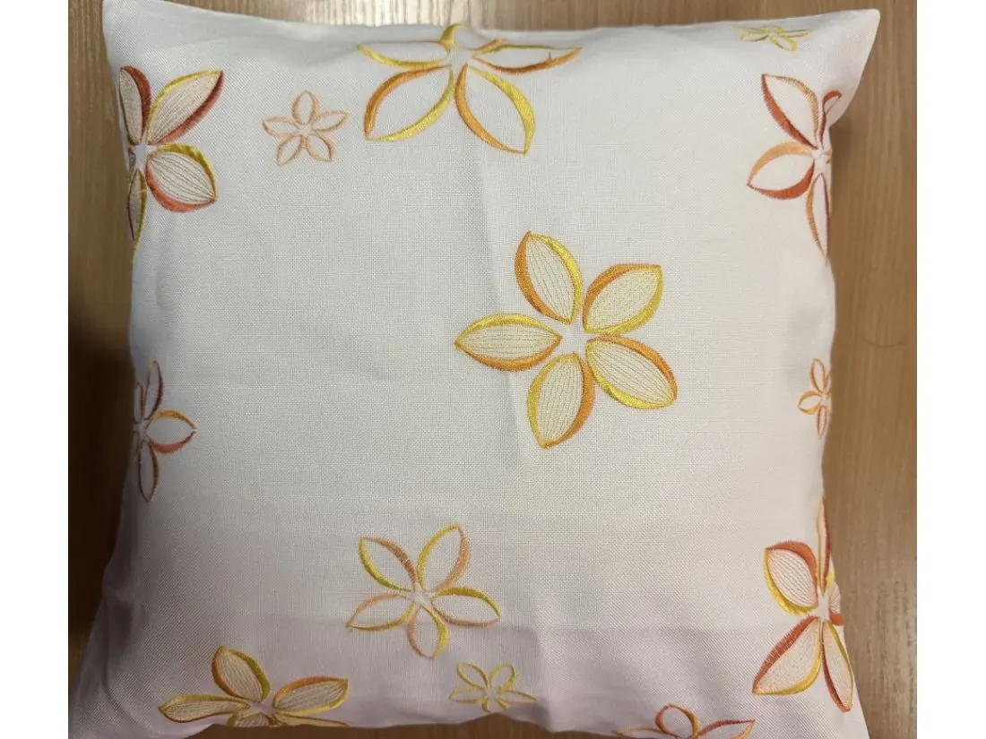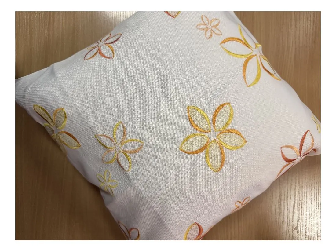 Poszewka Dekoracyjna 40x40 cm Haftowana – Biało-Pomarańczowa Kwiaty