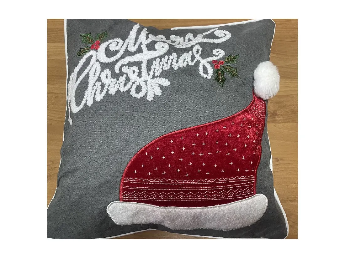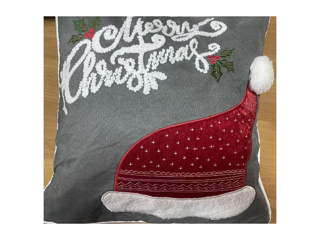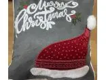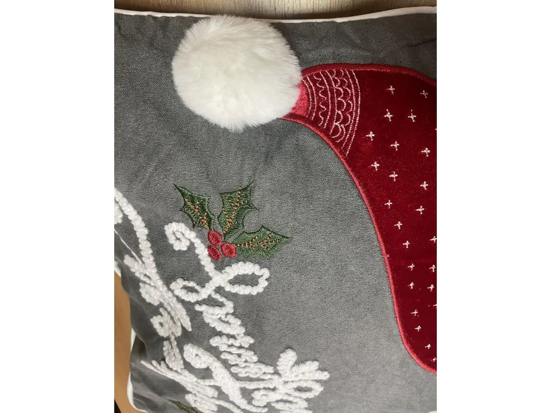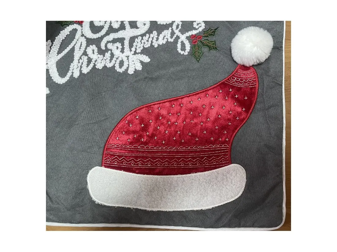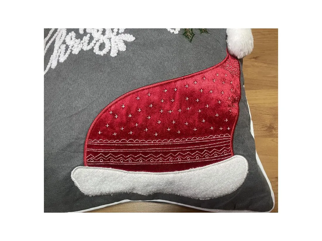 z precyzyjnie naszytym motywem świątecznym czapki mikołaja z puchatym pomponem, która magicznie podkreśli klimat Świąt Bożego Narodzenia, dodatkową ozdoba jest lamówka wokół poszewki.