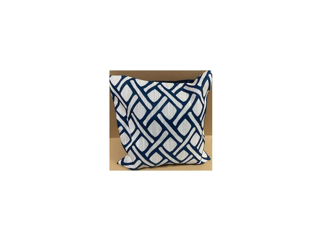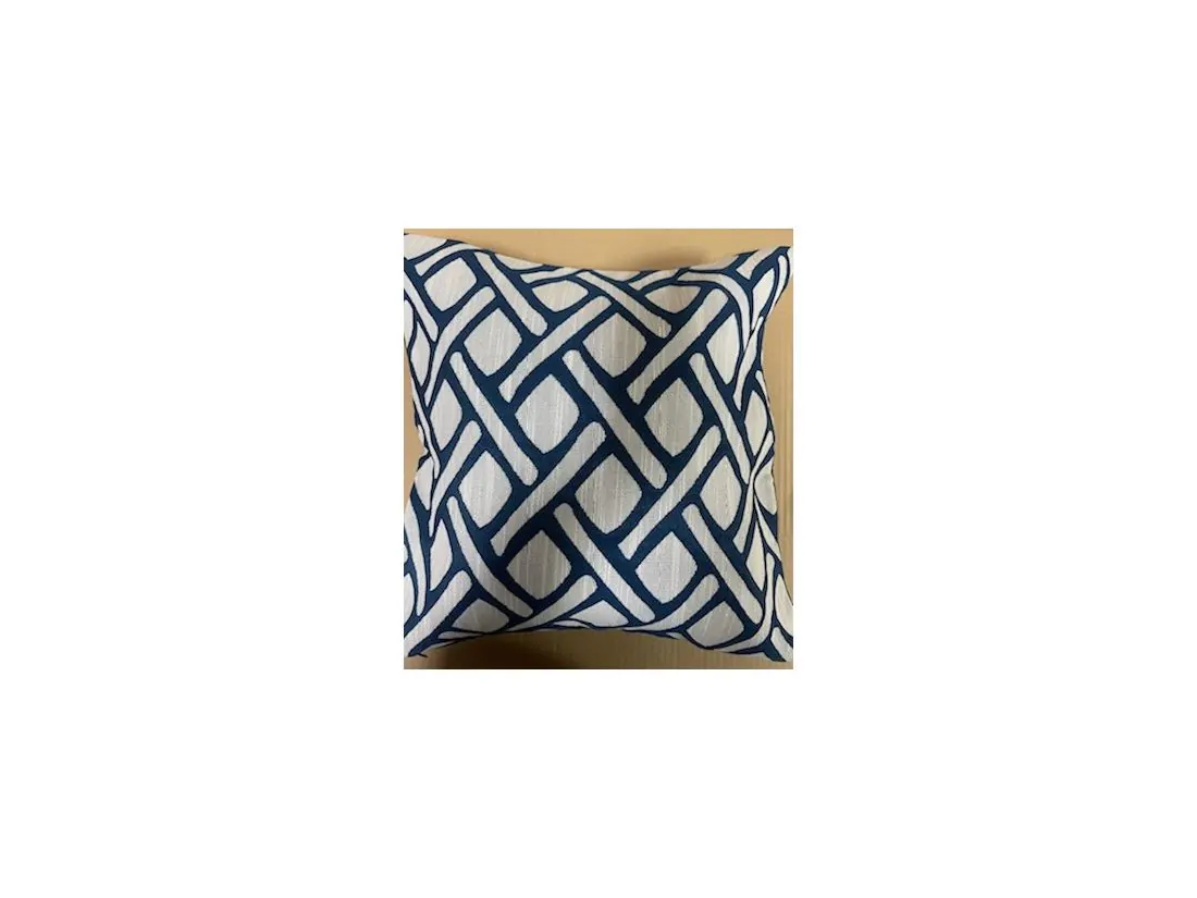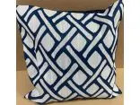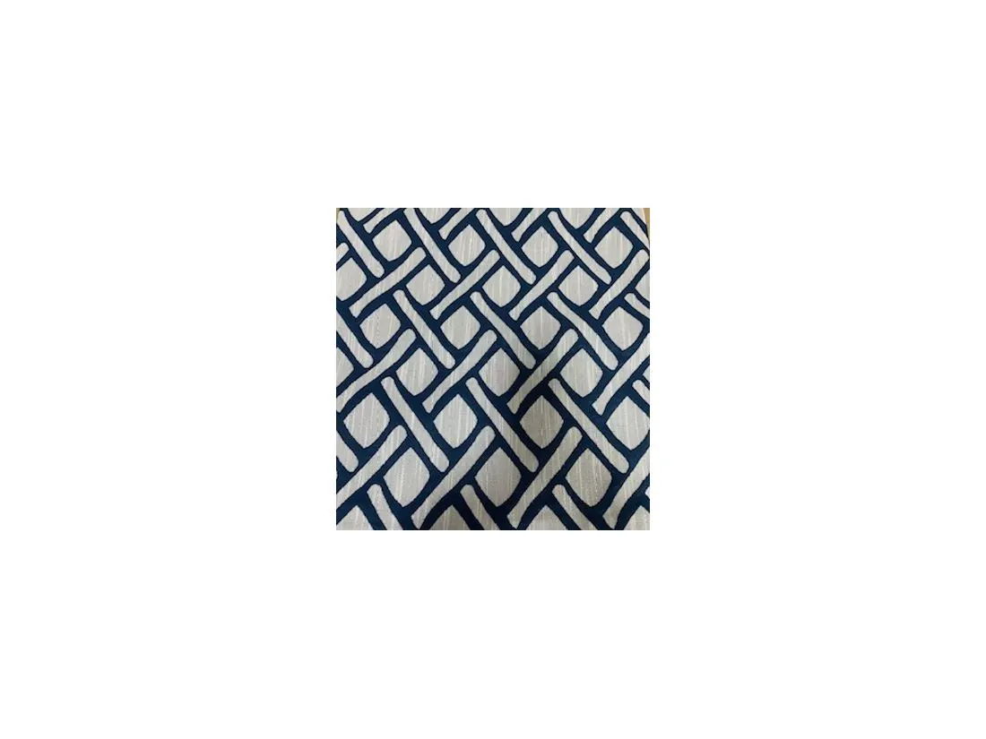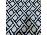 Poszewka dekoracyjna w rozmiarze 40x40 cm, typu jaś została wykonana z tkaniny 100% poliester w kolorze naturalnym z nadrukiem geometrycznym w kolorze granatowym. Poszewka jednostronna - nadruk z jednej strony, druga strona jednobarwna w kolorze granatowym, zapinana na zamek.
