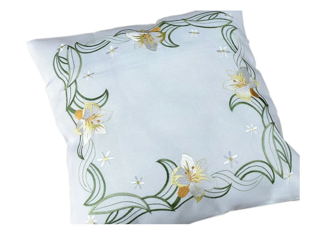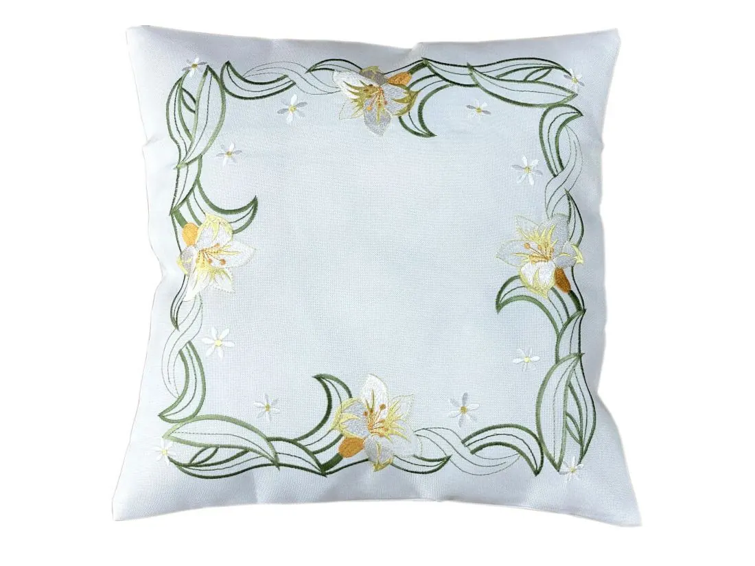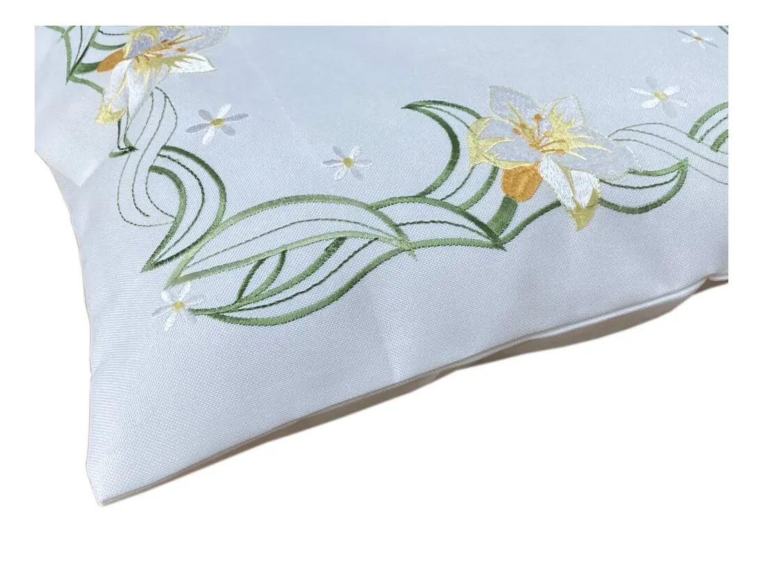 Dekoracyjna poszewka wiosenna w rozmiarze 40 x 40 cm w kolorze białym z aplikacją żonkili, została wykonana na tkaninie 100% poliester . Charakteryzuje się nowoczesnym designem, ciekawym kwiatowym wzorem oraz uniwersalnym białym kolorem.