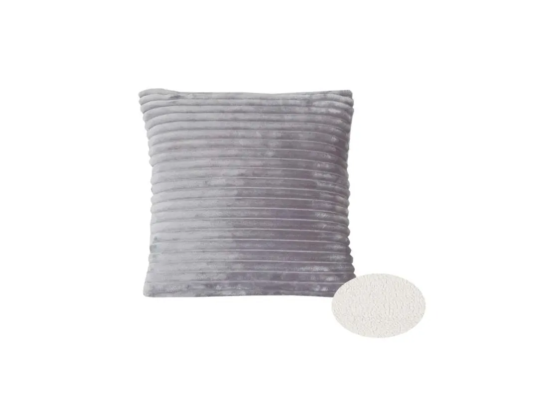 Poszewka na poduszkę 40x40 typu jaś została wykonana z mikrofibry 100 % poliester w kolorze popielatym delikatnym tłoczeniem pasków.
