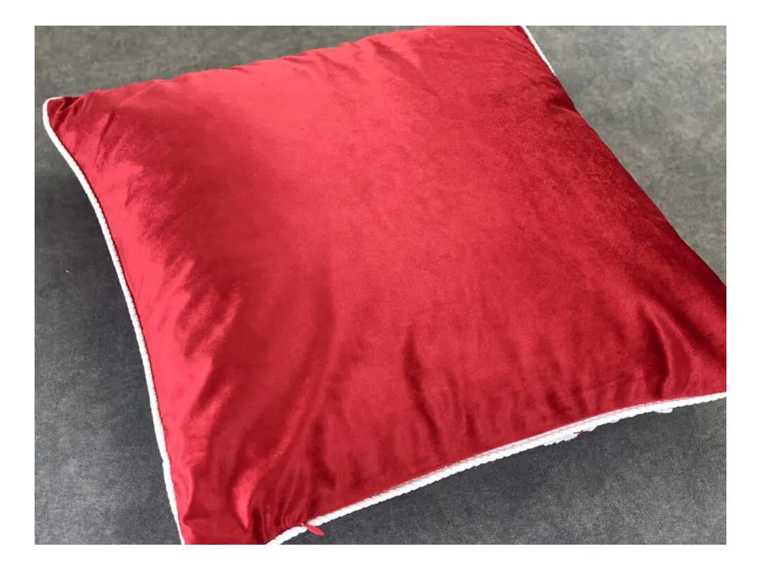 Obramowanie białym sznurkiem wzdłuż całego obwodu tworzy wyrazisty kontrast, podkreślając elegancję czerwonego welwetu i dodając poszewce wykończenia, które zachwyca detalami. To nie tylko praktyczna dekoracja, ale przede wszystkim piękna ozdoba, która wnosi do wnętrza wyjątkowy, świąteczny klimat i zachęca do celebrowania magicznych chwil w gronie najbliższych.