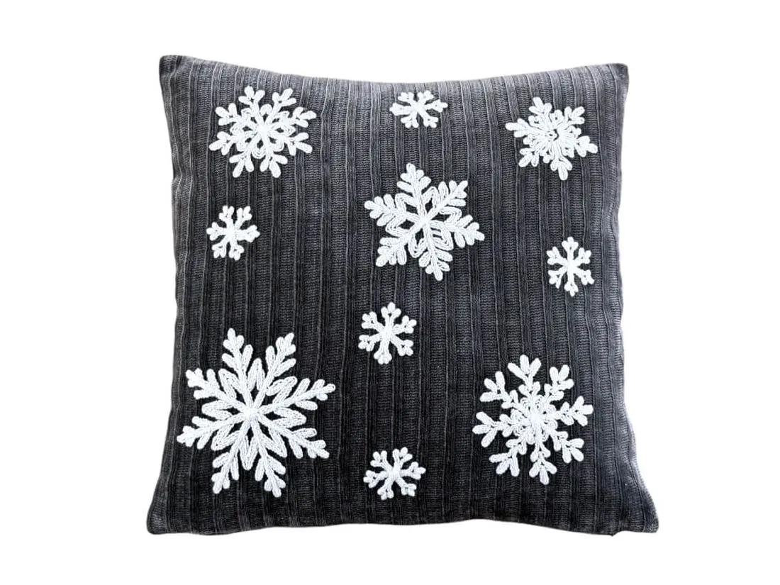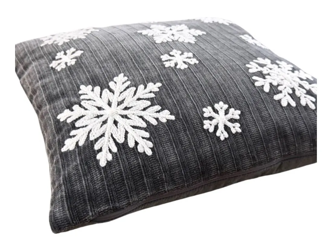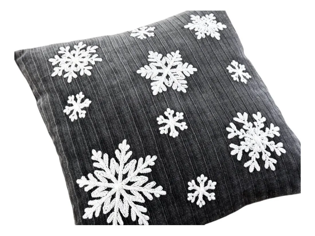Poszewka dekoracyjna świąteczna białe śnieżynki 40x40 cm Boże narodzenie grey