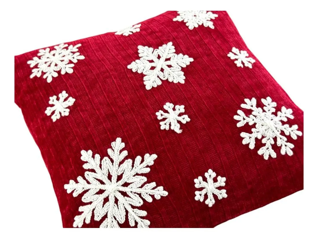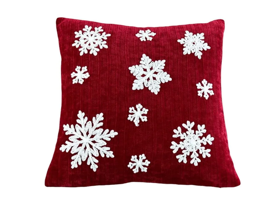 Poszewka dekoracyjna świąteczna białe śnieżynki 40x40 cm Boże narodzenie red 1 szt