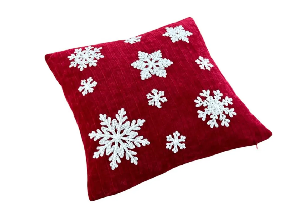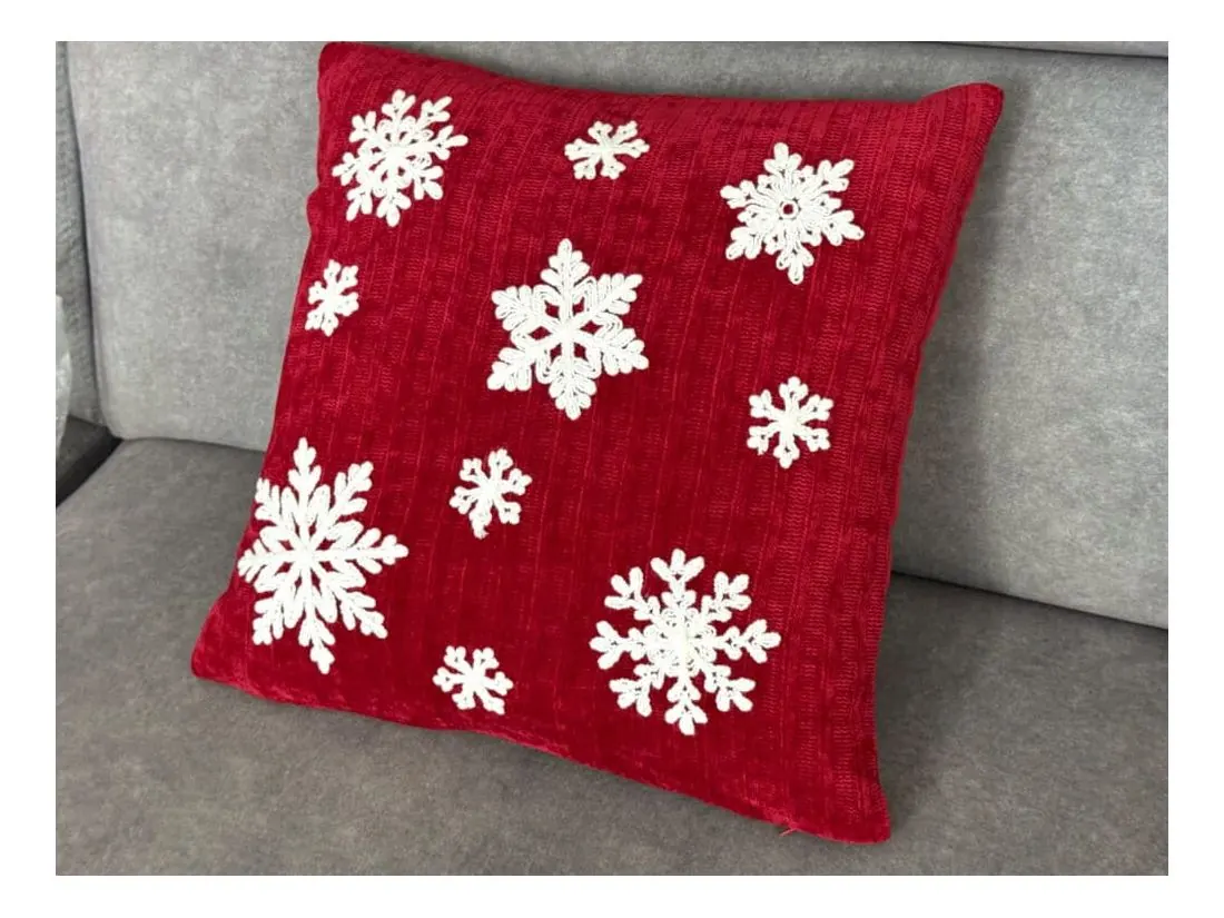 Świąteczna poszewka dekoracyjna o wymiarach 40x40 cm to idealny wybór na sezon świąteczny , który doda przytulności i magii każdemu wnętrzu. Wykonana z wysokiej jakości dzianiny w głębokim, intensywnie czerwonym kolorze, poszewka przyciąga wzrok i doskonale komponuje się z innymi świątecznymi dekoracjami. Jej powierzchnię zdobią misternie haftowane, białe śnieżynki, które wnoszą do wnętrza delikatny, zimowy klimat i odrobinę elegancji.Materiał to 100% poliester, co zapewnia jej odporność na zagniecenia, łatwość w pielęgnacji i wytrzymałość – będzie cieszyć oko przez wiele sezonów. Praktyczne zapięcie na zamek błyskawiczny, umiejscowione na dolnej krawędzi, nie tylko ułatwia wkładanie poduszki, ale też jest dyskretne, dzięki czemu zachowuje estetyczny wygląd.