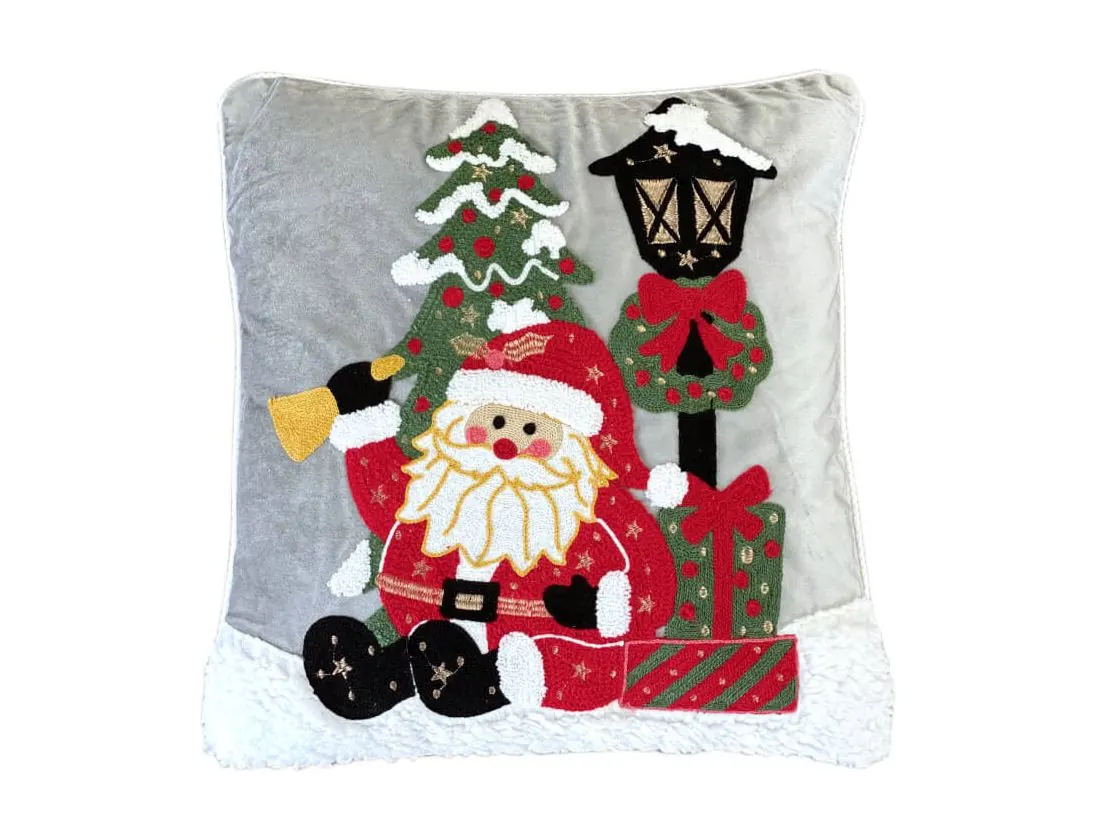 Poszewka dekoracyjna świąteczna mikołaj z prezentami 45x45 cm welwetowa Boże Narodzenie 53130 -1 szt