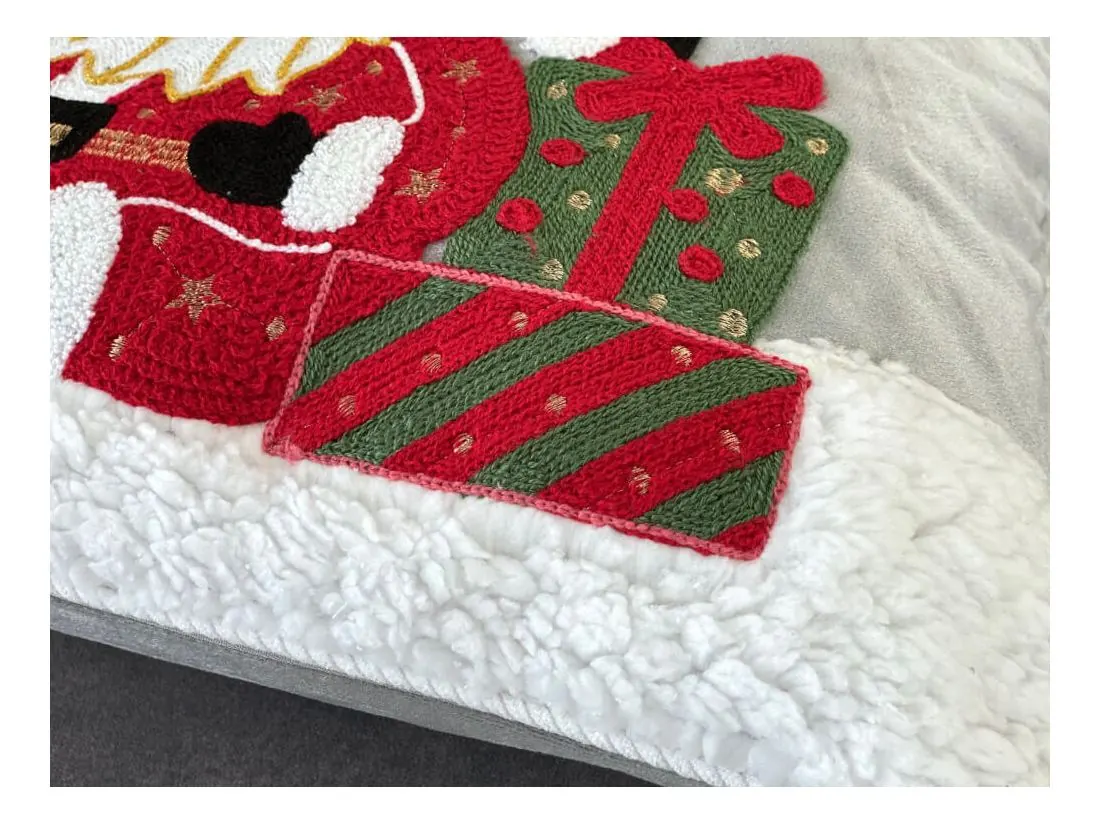 Poszewka zapinana jest na praktyczny zamek błyskawiczny, co ułatwia jej użytkowanie. To doskonała dekoracja na okres świąt Bożego Narodzenia, która nada wnętrzu ciepłego, świątecznego klimatu i będzie pięknym akcentem w salonie, sypialni lub pokoju dziecięcym.