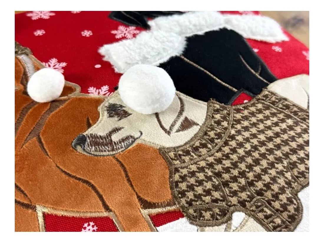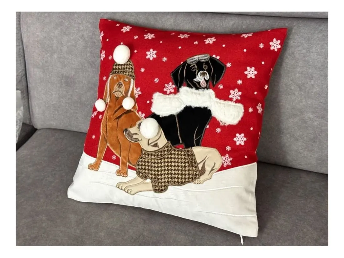 Wprowadź świąteczną atmosferę do swojego domu z tą wyjątkową poszewką w intensywnej czerwieni, wykonaną w 100% z poliestru. Stworzona z myślą o zimowym czasie, poszewka jest dopracowana w każdym detalu, by nadać wnętrzu ciepły i radosny charakter.Główną ozdobą są urocze pieski wykonane z welurowych aplikacji, które zdobią miękkie pompony i futerkowe szaliki, dodające całości przytulnego, zimowego uroku. Tło wypełniają drobne, padające śnieżynki, tworząc nastrojowy, zimowy klimat.