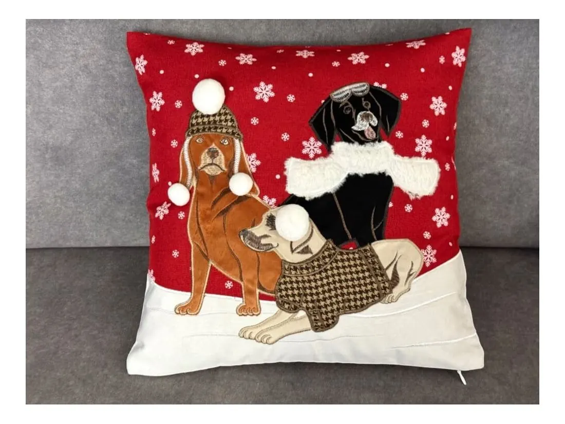 Poszewka dekoracyjna świąteczna pieski zimą 40x40 cm Boże Narodzenie 0097 -1 szt