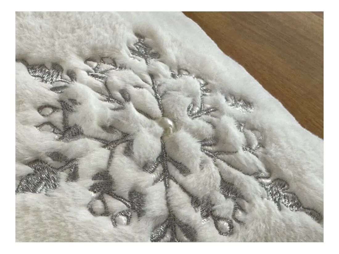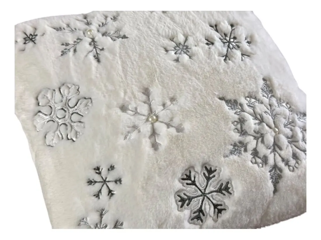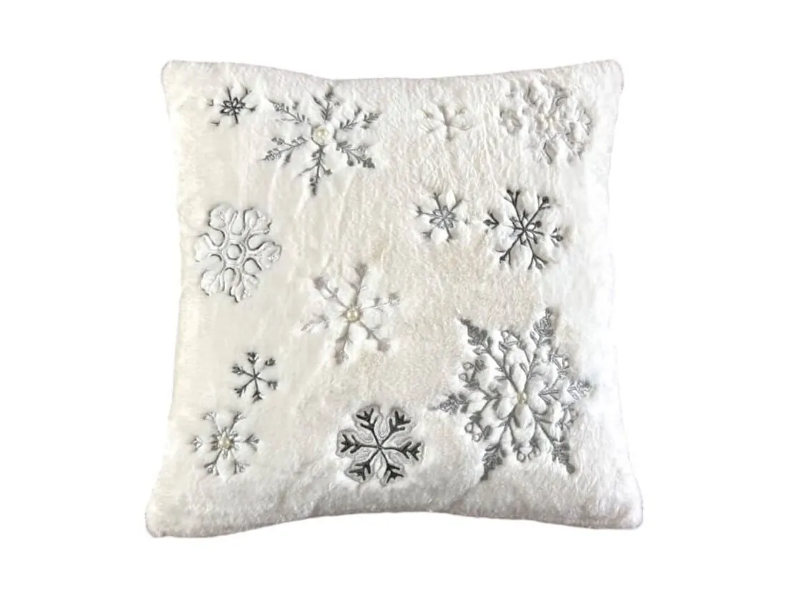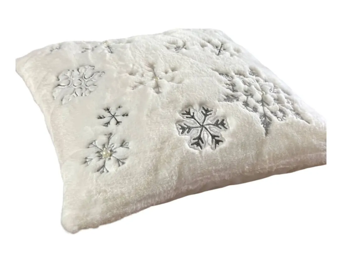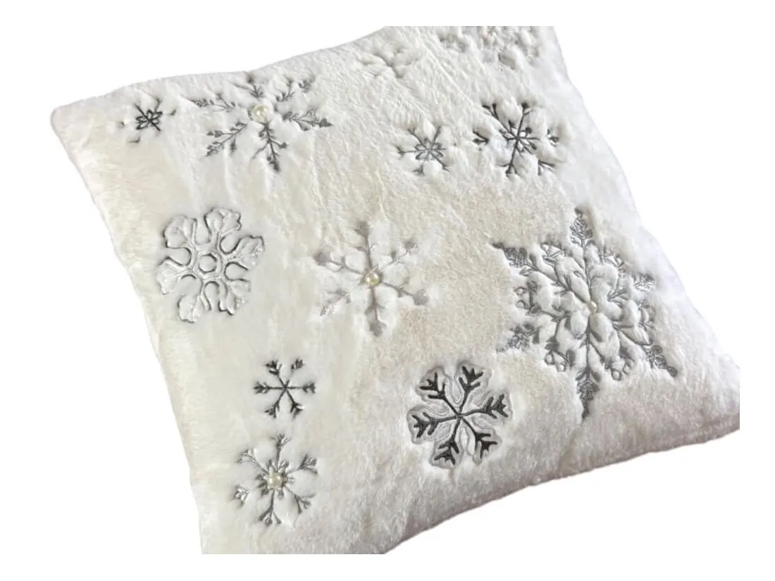 Wprowadź odrobinę zimowego czaru do swojego wnętrza z tą elegancką, futerkową poszewką dekoracyjną w subtelnym odcieniu bieli. Wykonana z wyjątkowo miękkiego, delikatnego futerka 100 % poliester, poszewka jest przyjemna w dotyku i doskonale komponuje się z innymi zimowymi akcentami w pomieszczeniu.Zdobiona srebrnymi, haftowanymi śnieżynkami, poszewka emanuje subtelnym blaskiem i urokiem zimowej aury. Niektóre śnieżynki zostały dodatkowo ozdobione drobnymi koralikami, które dyskretnie połyskują w świetle, dodając całości wyjątkowego charakteru i elegancji. Ta delikatna poszewka nie tylko pięknie wygląda, ale również wprowadza atmosferę przytulności i ciepła, będąc idealnym wyborem na zimowe dni.
