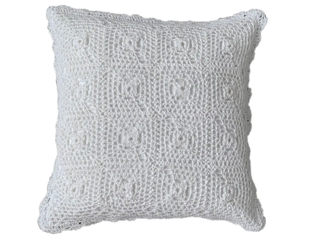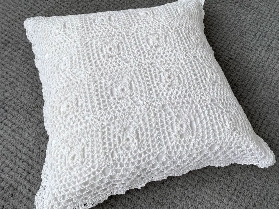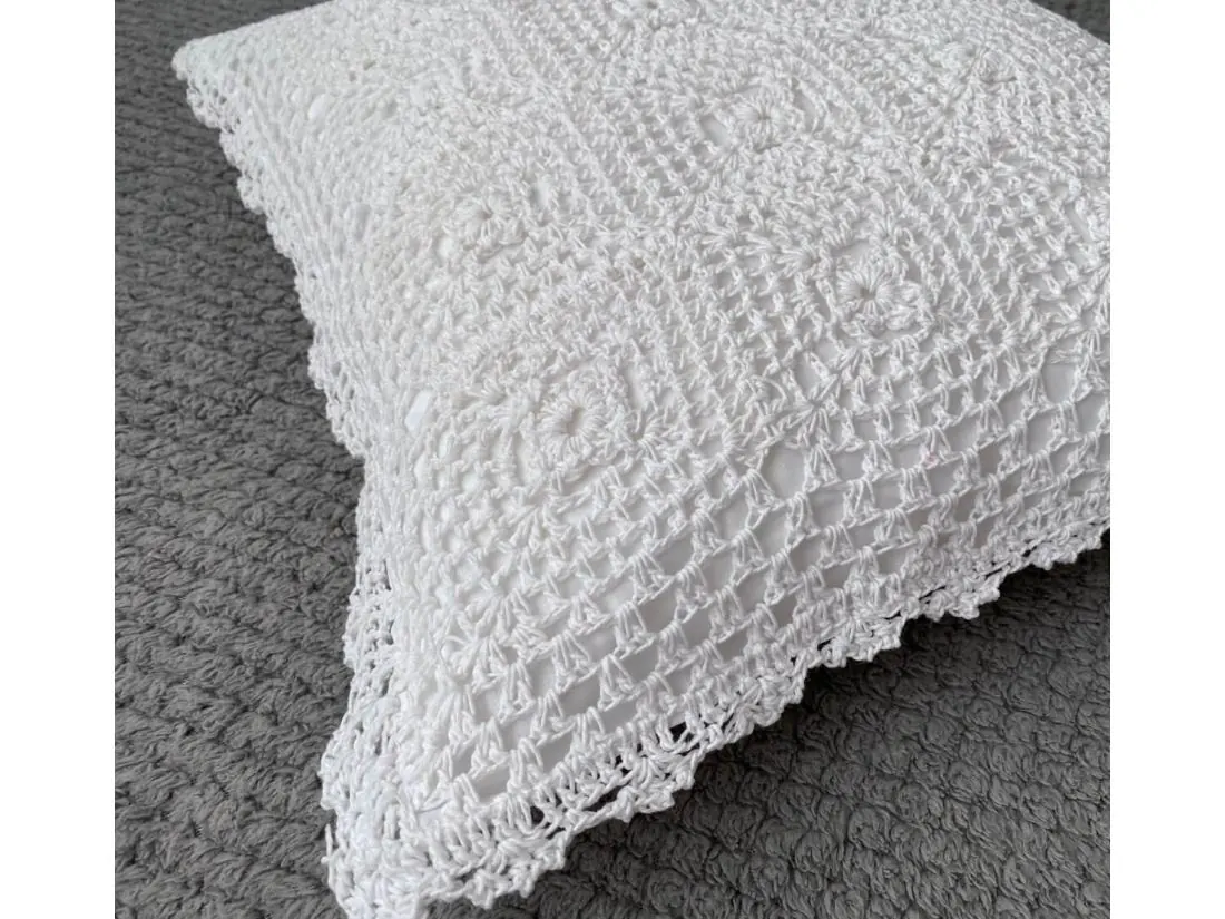 Poszewka Dekoracyjna Szydełkowa 40x40 – Bawełniane Rękodzieło Biała