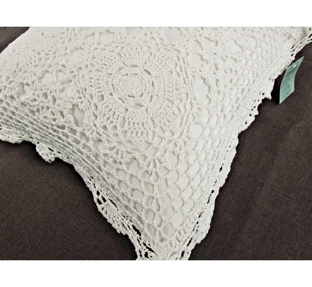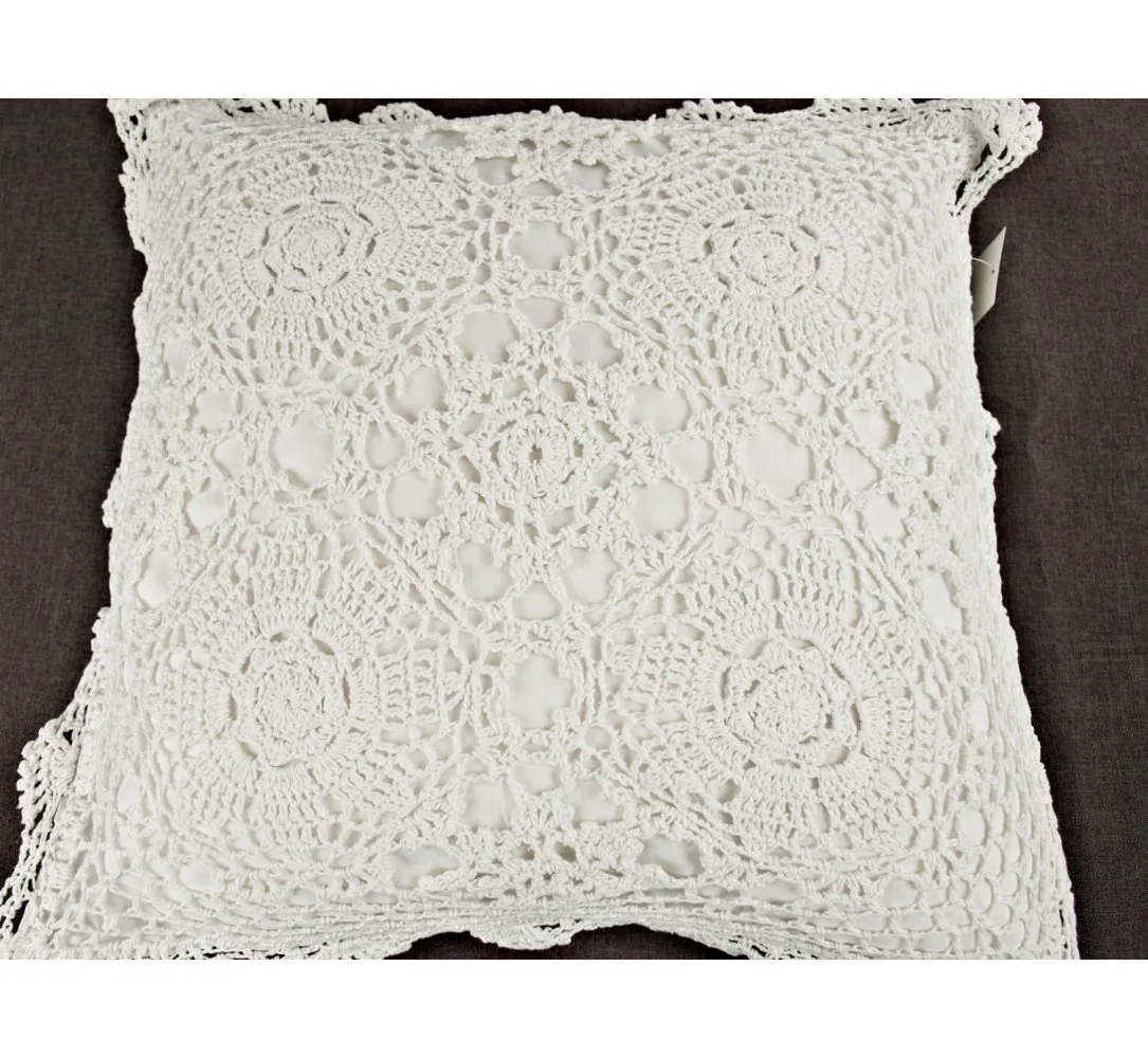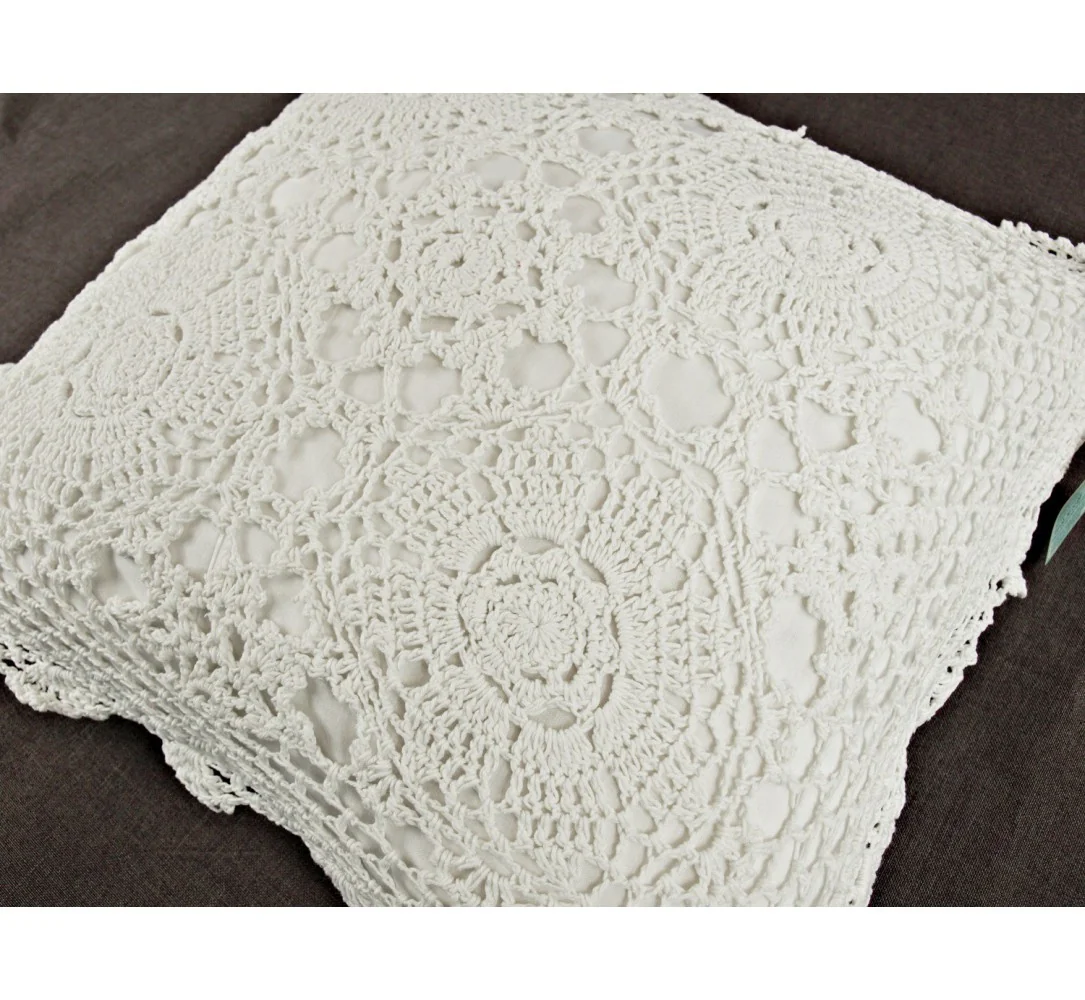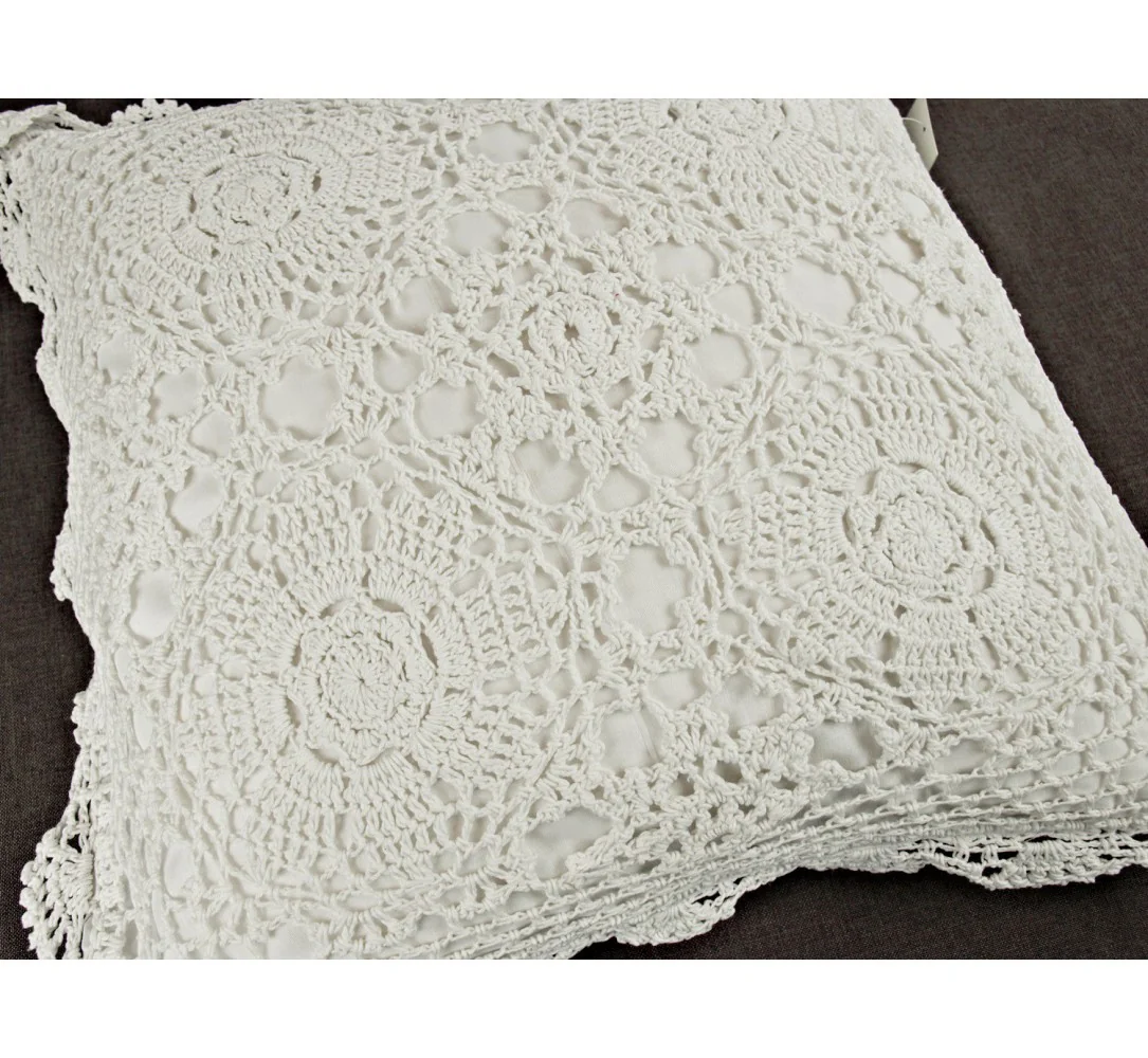 Poszewka Dekoracyjna Szydełkowa 40x40 cm – Białe Bawełniane Rękodzieło