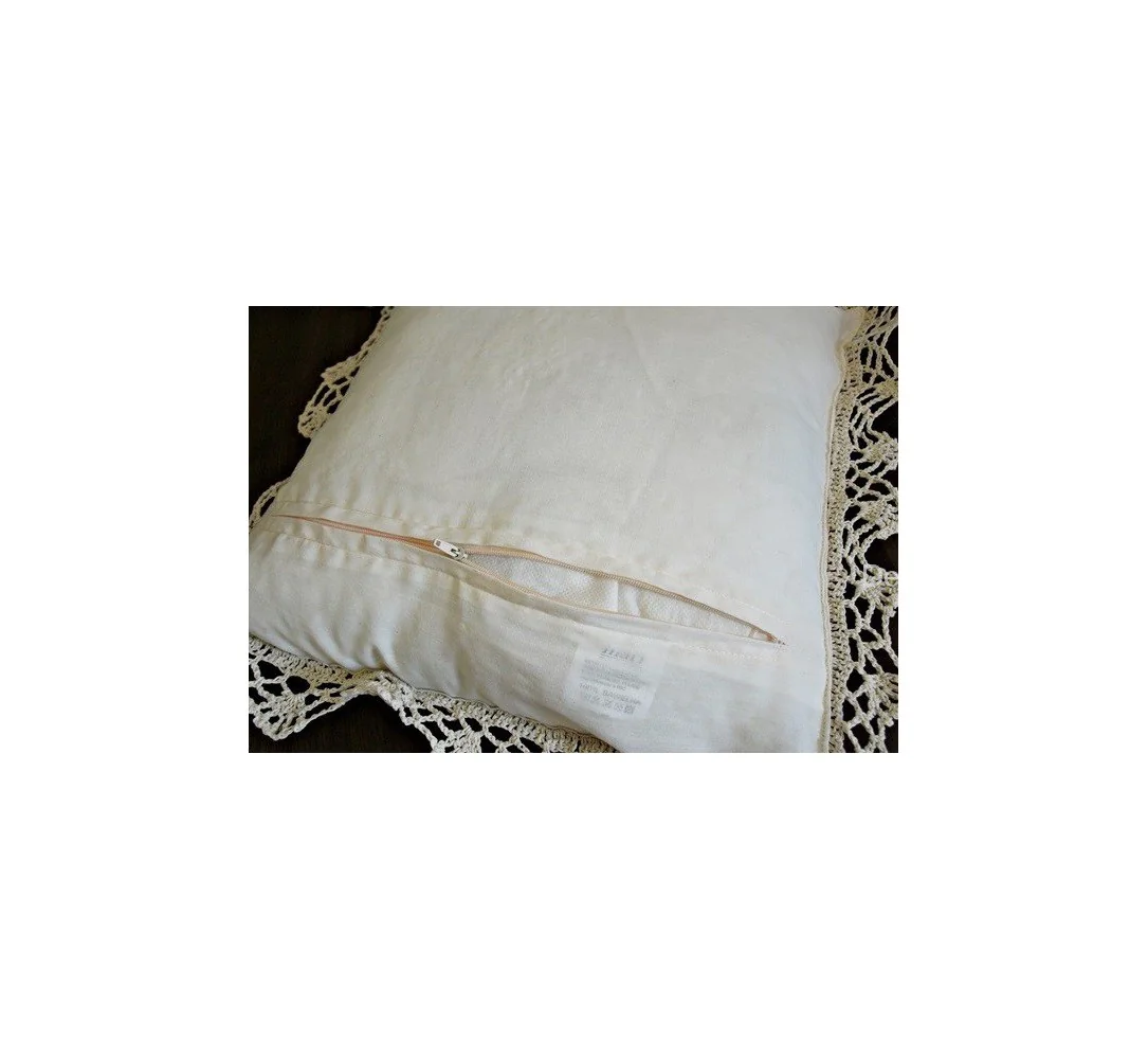 - Ręczne wykonanie: Przód poszewki został w całości wydziergany ręcznie na szydełku, co nadaje każdemu egzemplarzowi niepowtarzalny charakter.