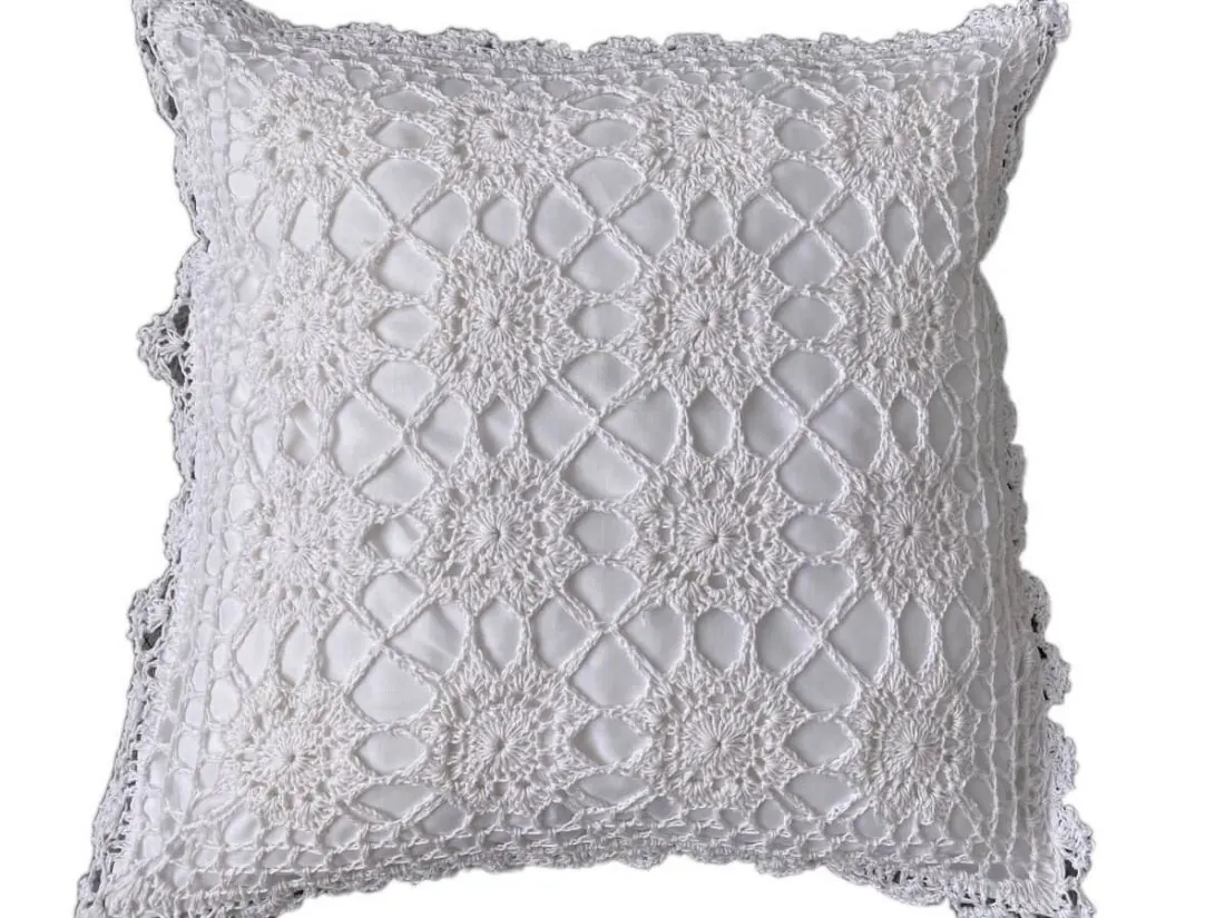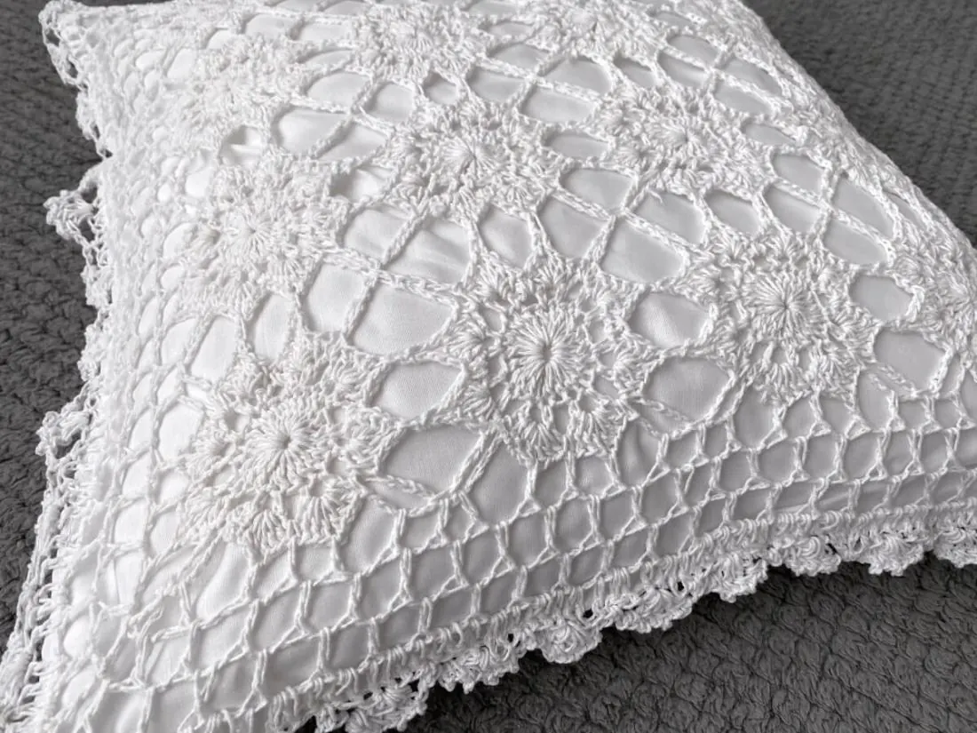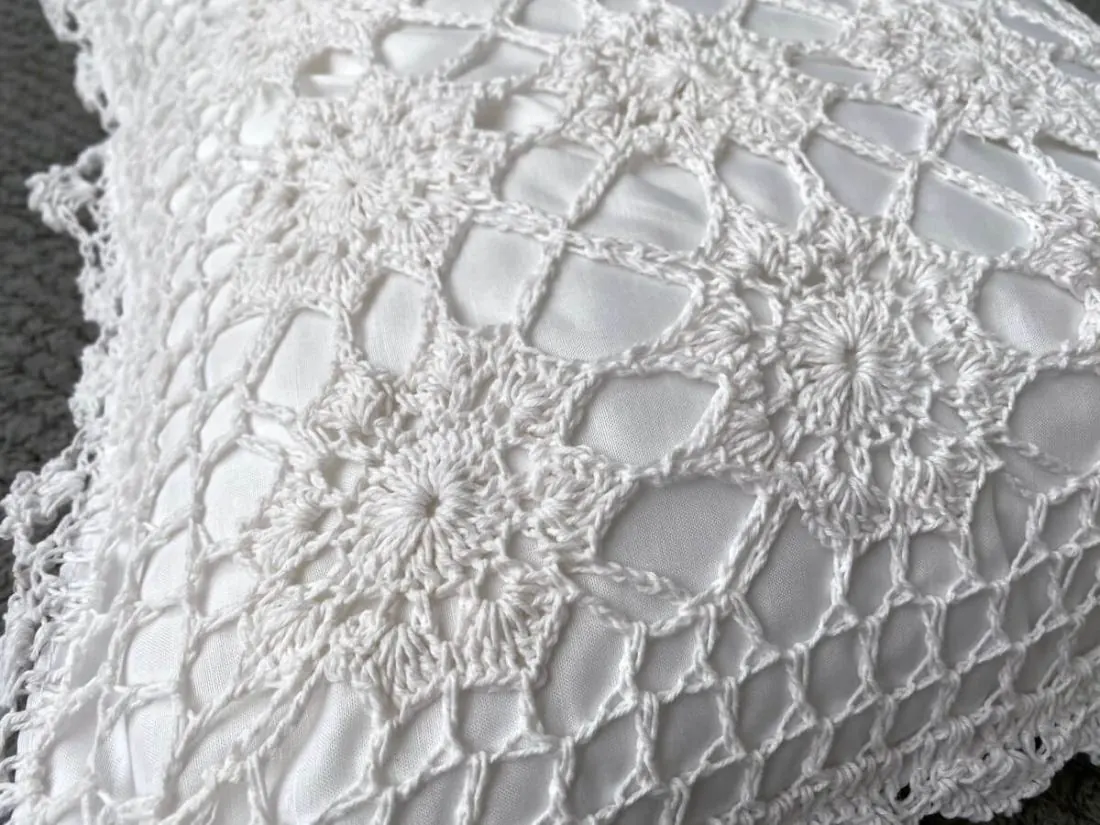 Poszewka Dekoracyjna Szydełkowa 40x40 cm – Białe Rękodzieło