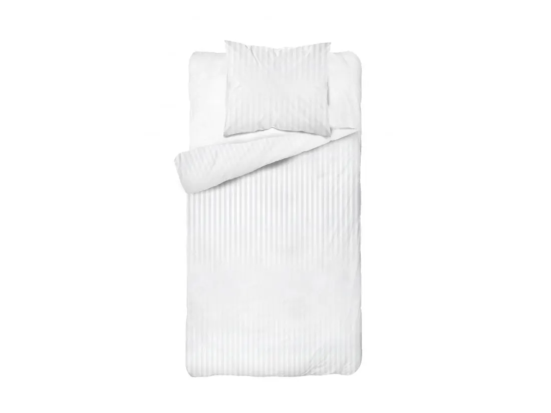 Poszewka hotelowa 70x80 cm z adamaszku, wzór w pasy 2 cm. Sanforyzowana tkanina – nie kurczy się i zachowuje kształt. Miękka, trwała, pranie do 90°C.