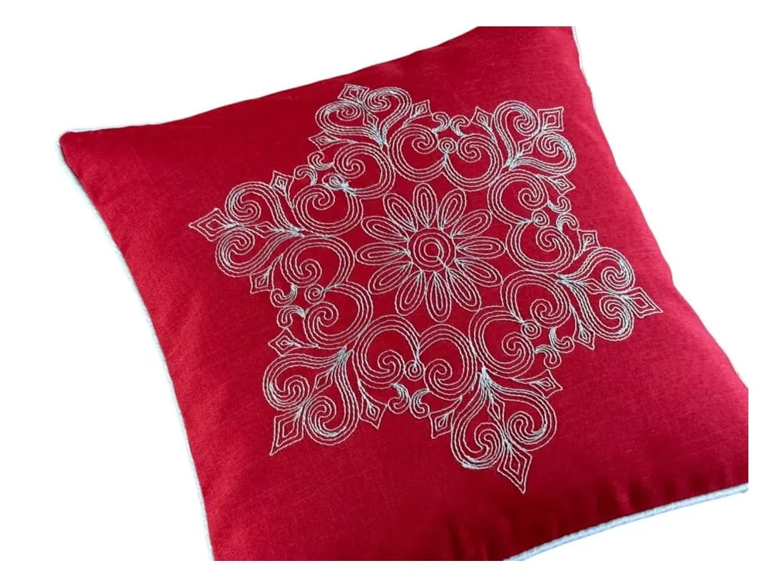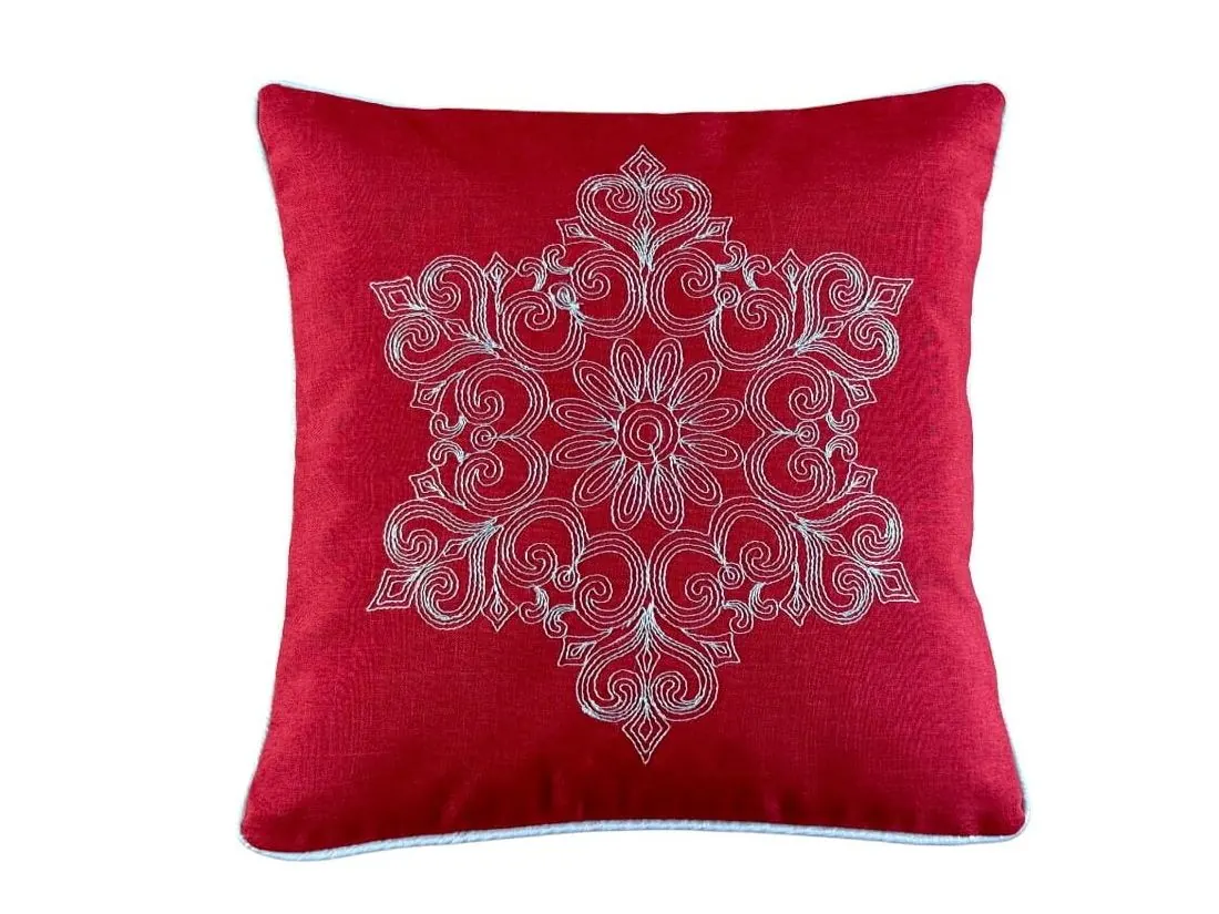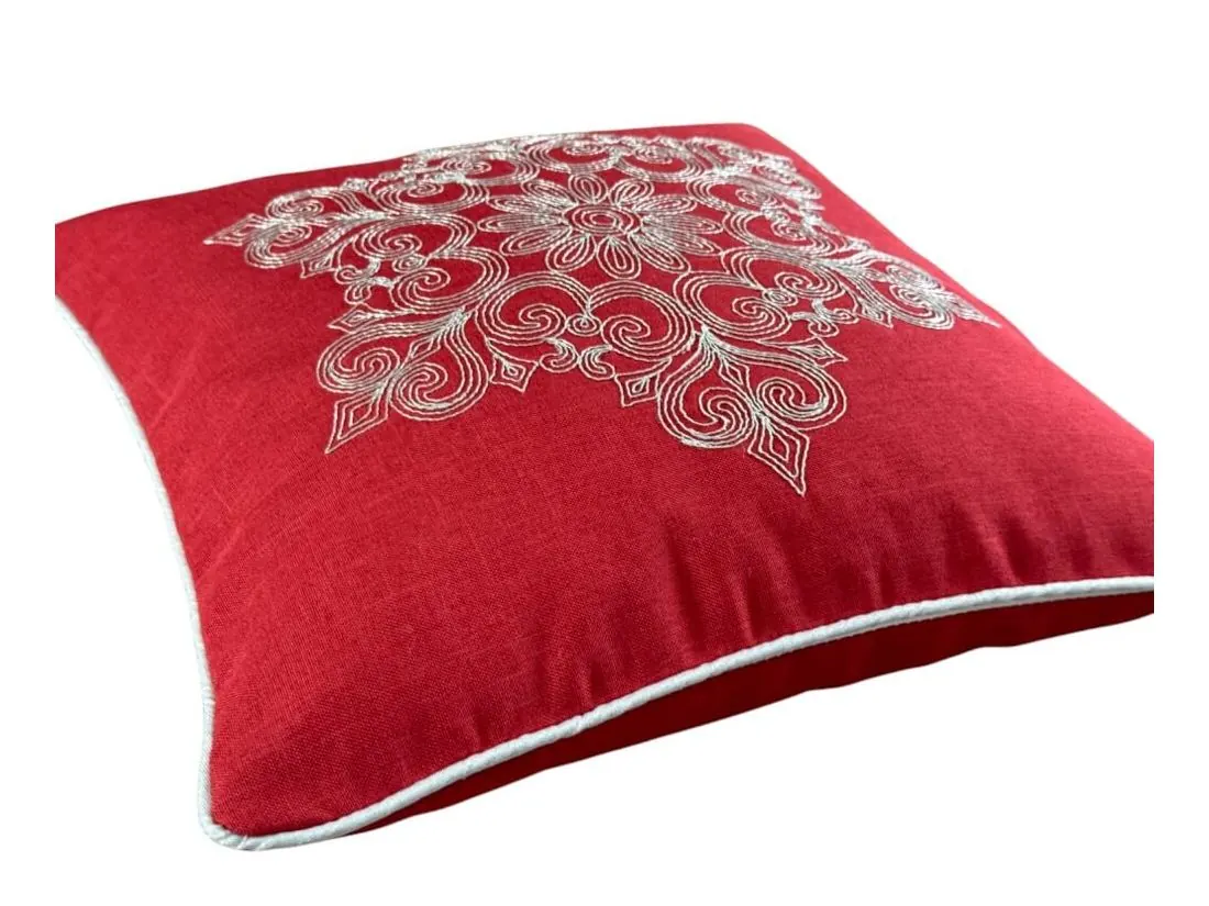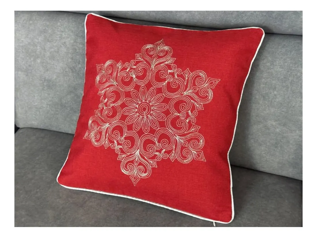 Poszewka świąteczna 40x40 cm czerwona, srebrny haft int 0149 Boże Narodzenie 1 szt