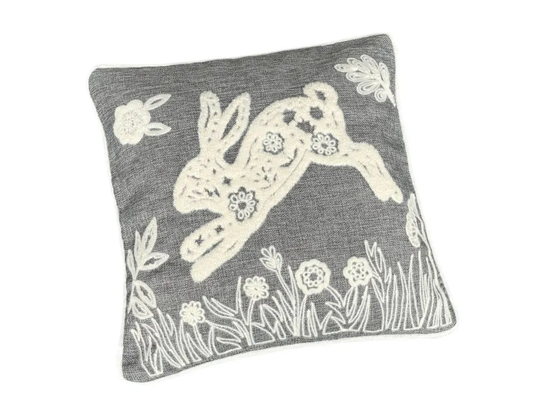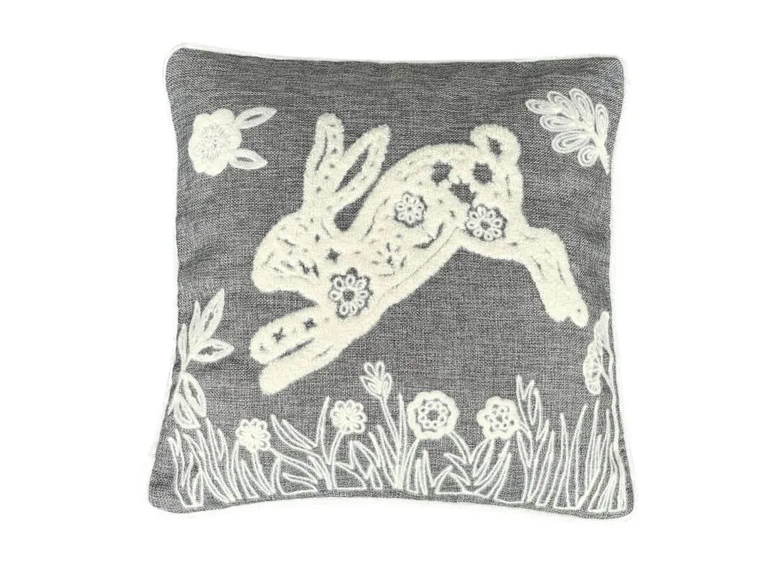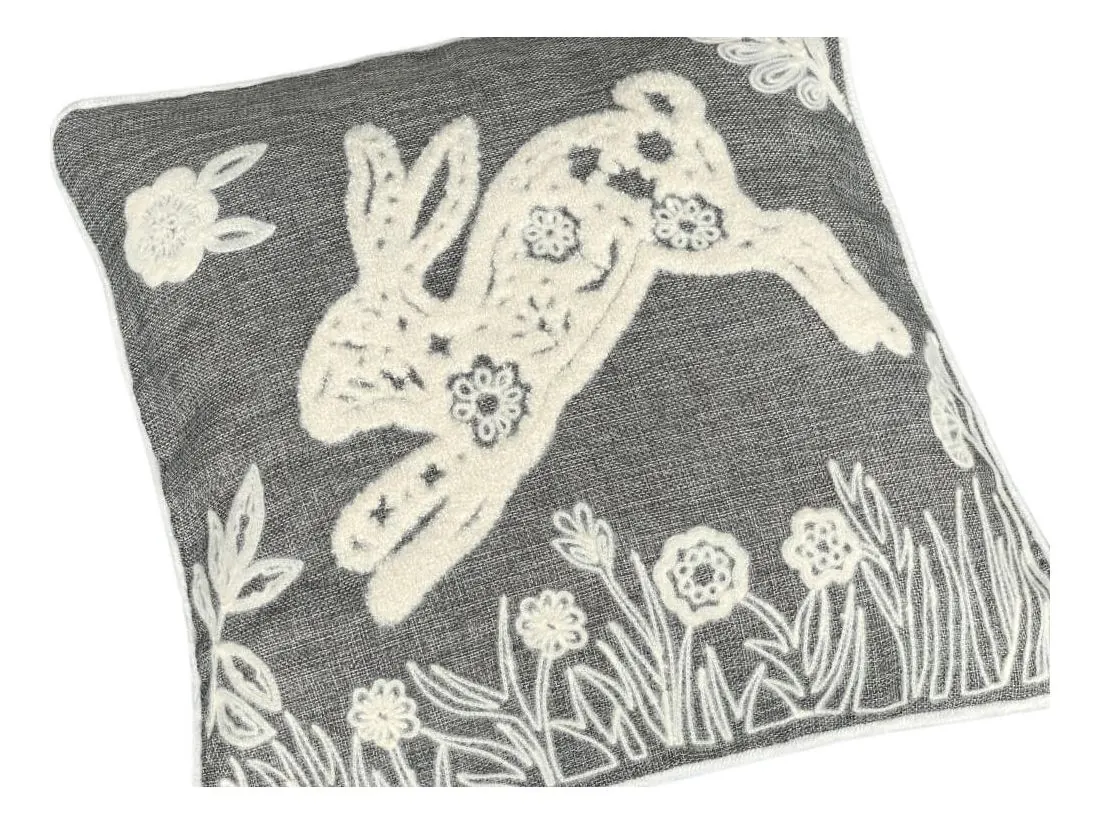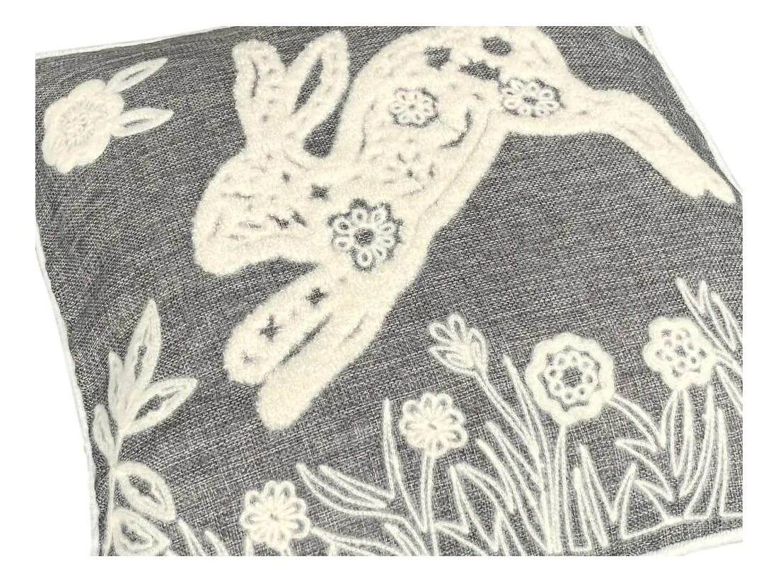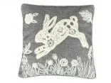 Dekoracyjna poszewka świąteczna w rozmiarze 40 x 40 cm w kolorze szarym z aplikacją zajączka na łączce, została wykonana na tkaninie 100% poliester . Charakteryzuje się nowoczesnym designem, ciekawym wzorem oraz modnym kolorem. Poszewka została wykończona mięciutką lamówką.