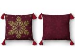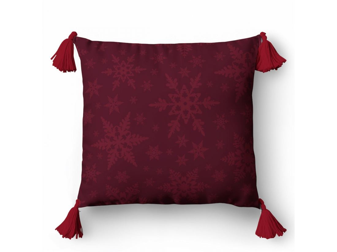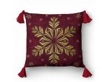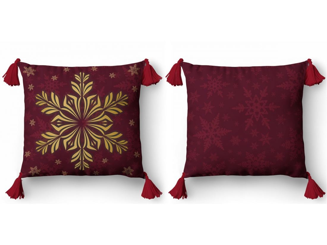 Poszewka świąteczna 45x45 cm Panama –złota śnieżynka na bordowym tle