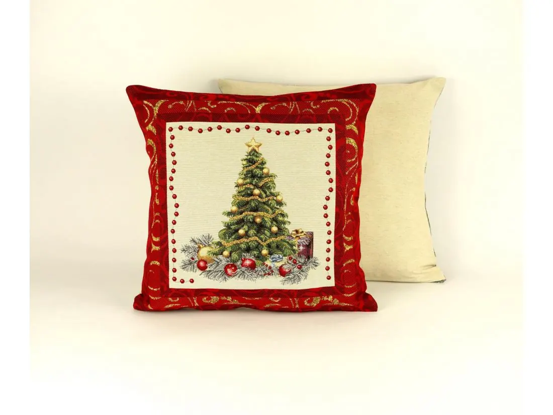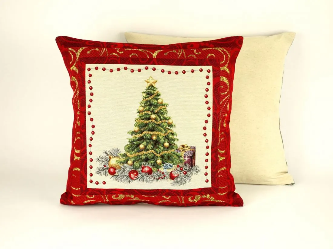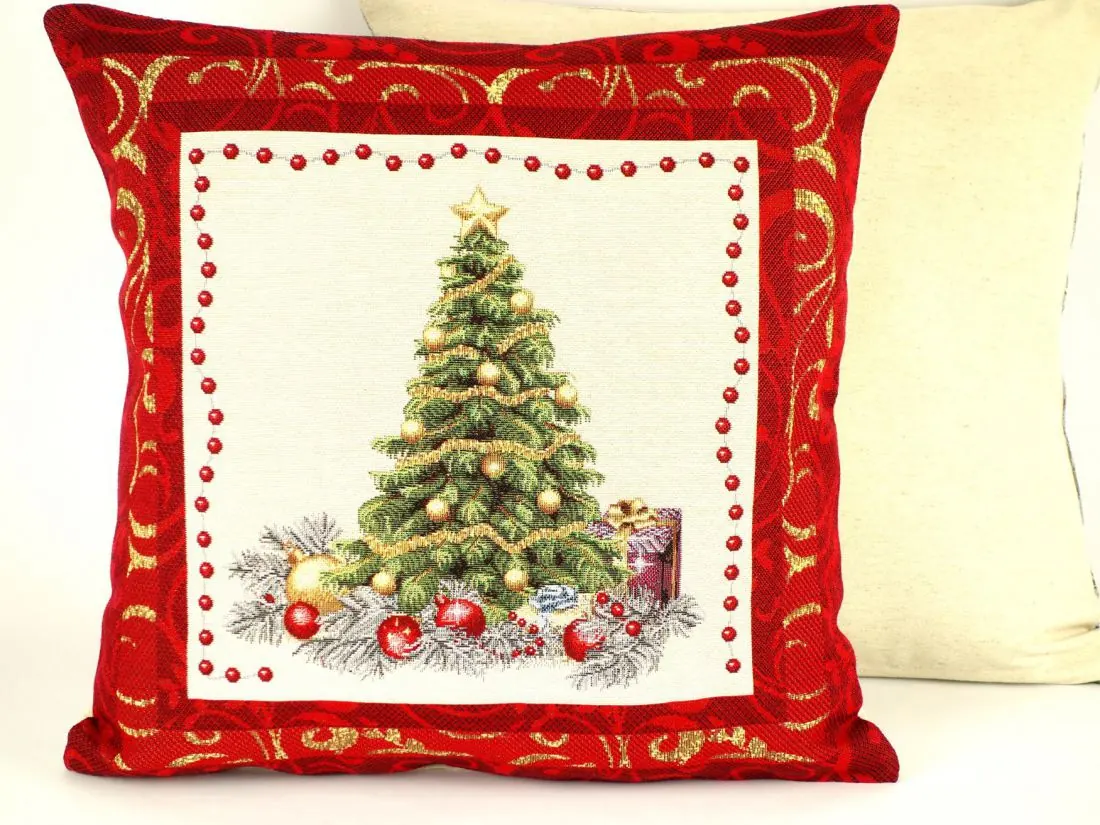 Poszewka świąteczna gobelinowa choinka w ramce czerwonej nr sw 206 SlodkieSny 45x45 cm gobelin