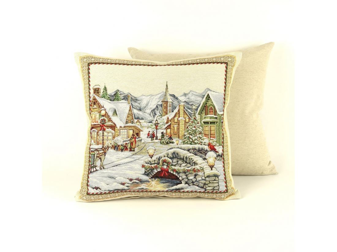 Poszewka świąteczna gobelinowa miasto zimą SlodkieSny 45x45 cm gobelin