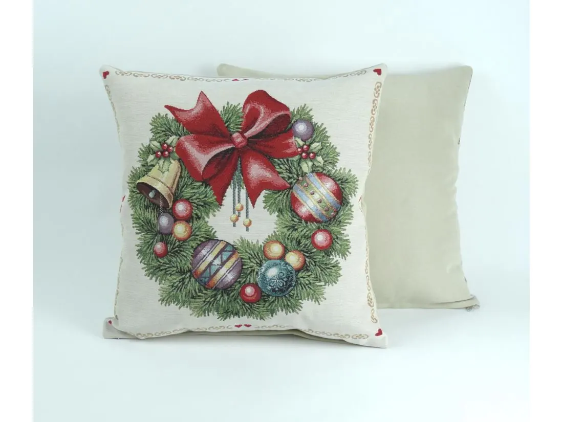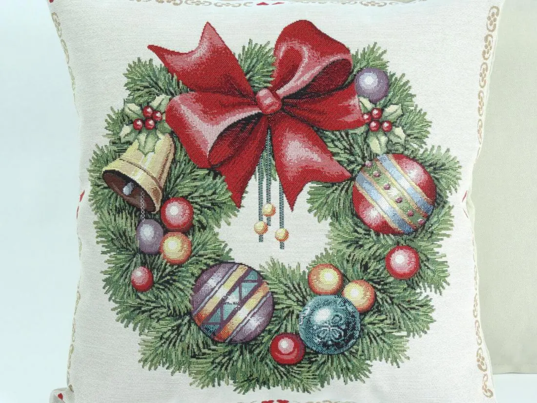 Poszewka świąteczna gobelinowa nr. 202 stroik kokardka SlodkieSny 45x45 cm gobelin