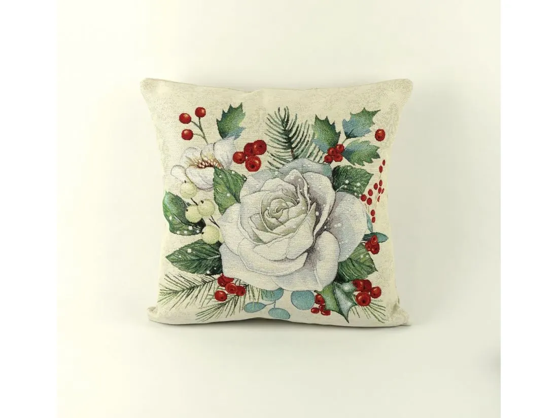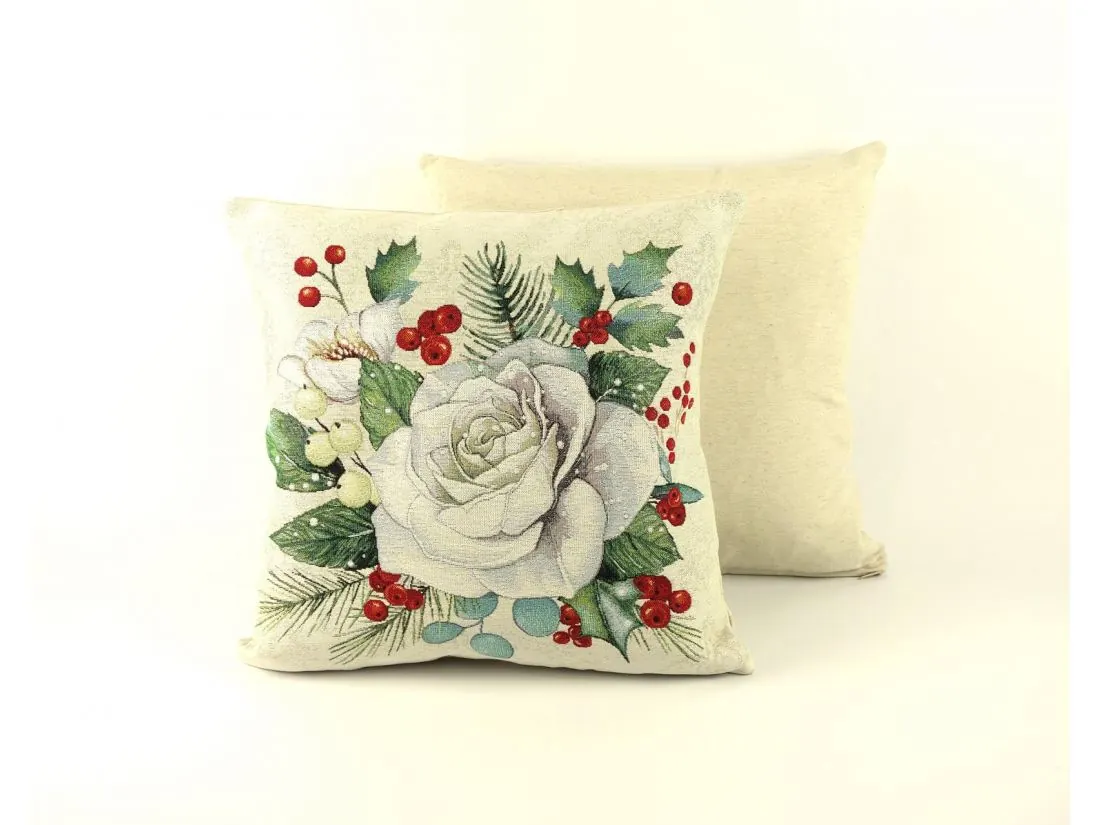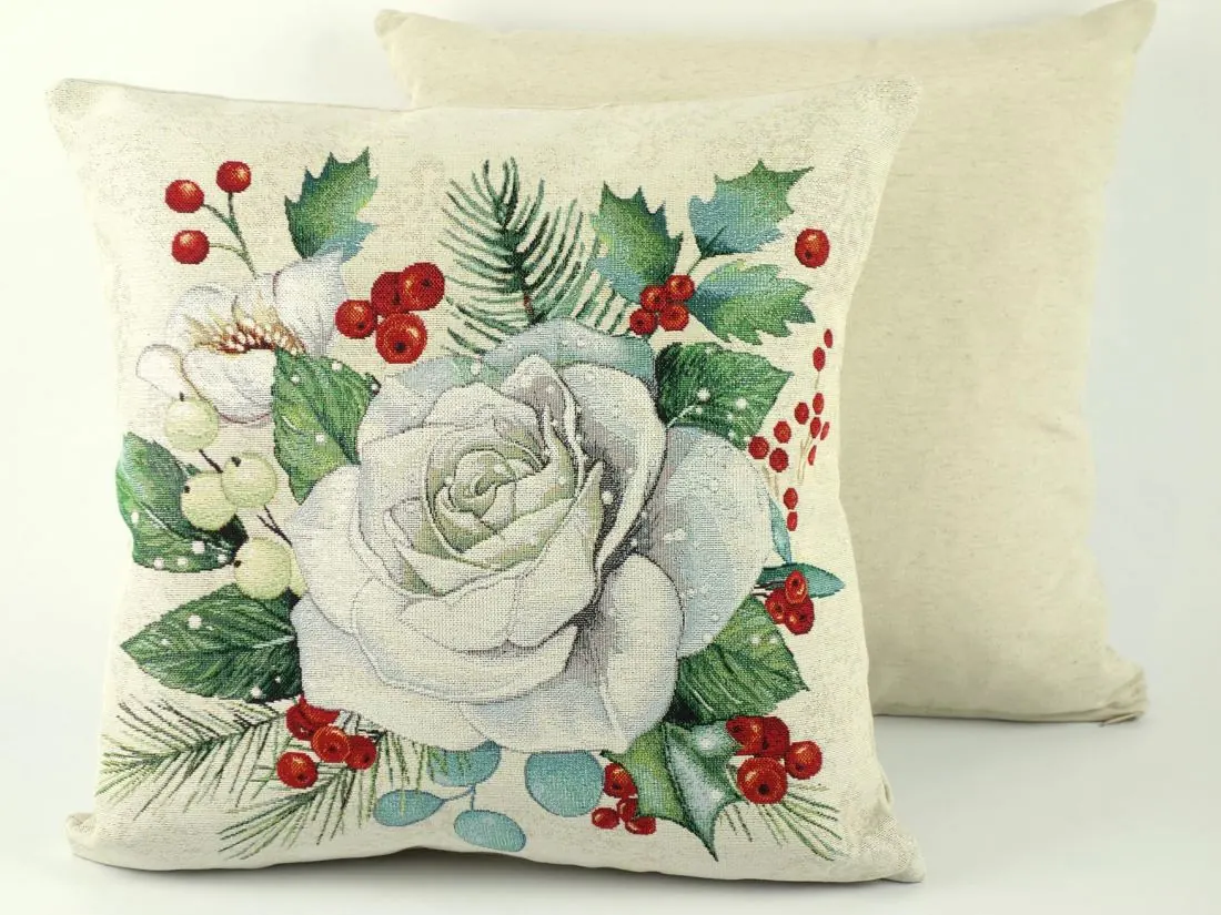 Poszewka świąteczna gobelinowa nr. 205 a biała róża SlodkieSny 45x45 cm gobelin srebrna nitka