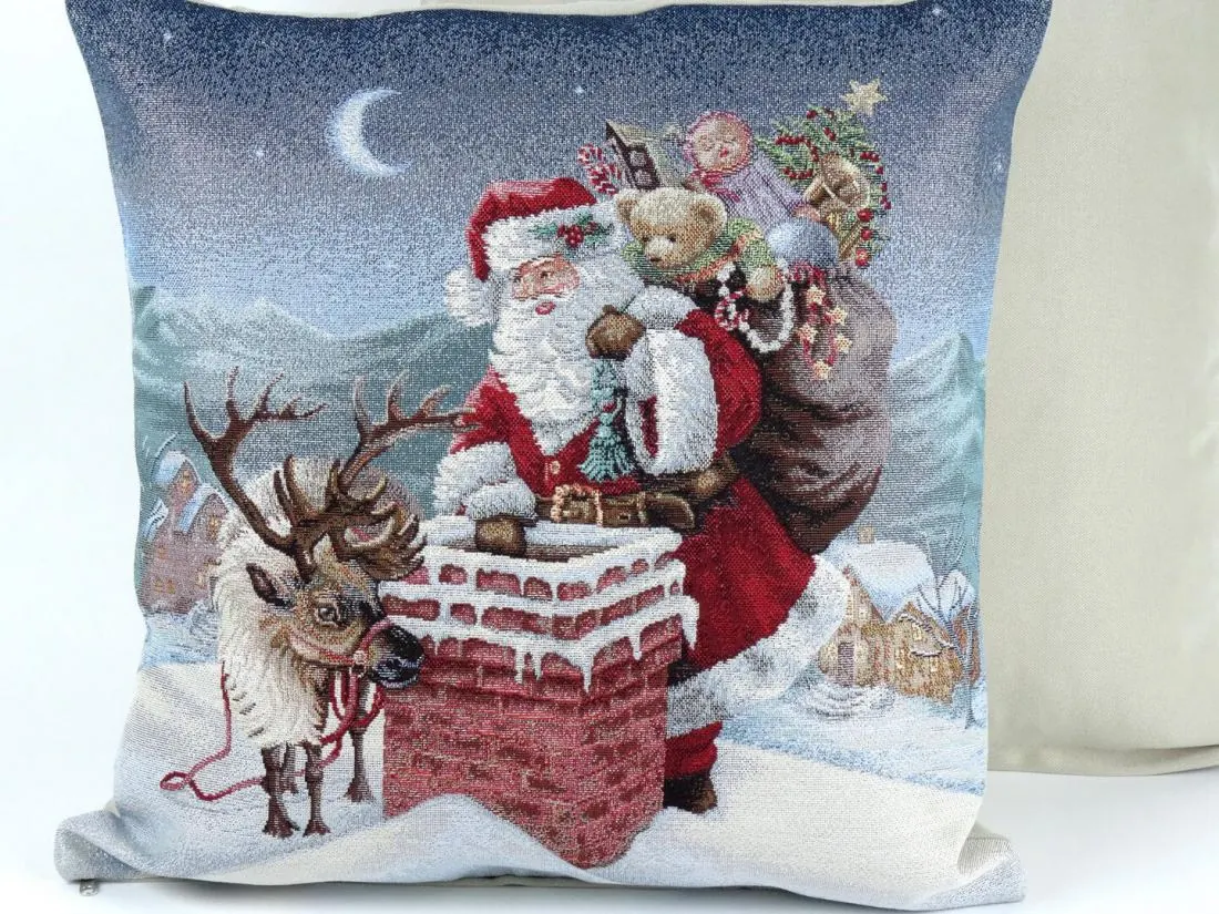 Poszewka świąteczna gobelinowa nr. 217 mikołaj z prezentami SlodkieSny 45x45 cm gobelin