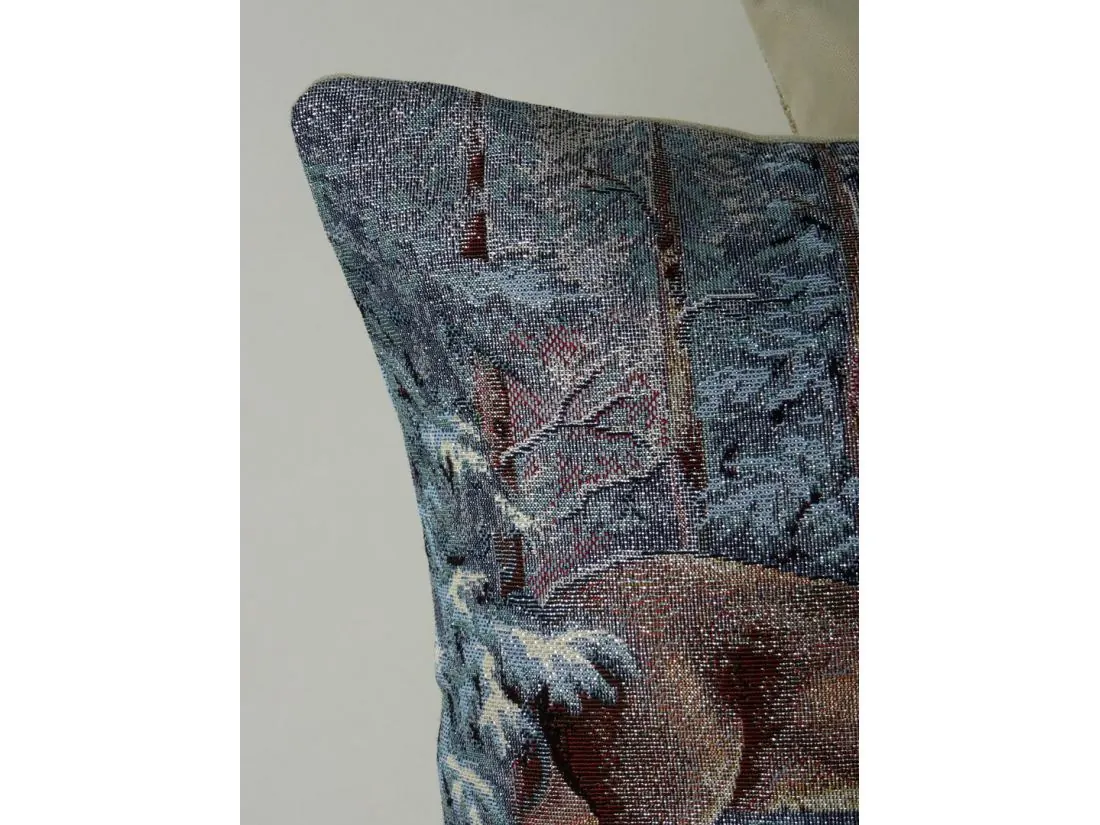 Dekoracyjna poszewka gobelinowa w rozmiarze 45x45 cm, została wykonana z tkaniny hiszpańskiej 25% bawełna, 70 % poliester, 5% poliakryl. Poszewka dwustronna - tkanina tkana żakardowa ze wzorem z jednej strony, druga strona jednobarwna, poszewka zapinana na zamek. Dodatkowym atutem poszewki jest srebrna nitka wpleciona w tkaninę gobelinową.Niepowtarzalne wzornictwo poszewki gobelinowej podkreśli wystrój każdego wnętrza. Jest to niezastąpiony element salonu lub sypialni który może odmienić każde wnętrze oraz magicznie podkreślić jego wystrój. Wzornictwo nawiązuje do tradycyjnych gobelinów które dawniej zdobiły ściany w domach. Zastosowana tkanina jest tkana, gruba, nie gniecie. Różnorodność wzorów na poszewkach gobelinowych zadowoli każdego kto pragnie aby w jego pomieszczeniu zagościł niepowtarzalny magiczny sielski klimat. Poszewka gobelinowa może być świetnym rozwiązaniem aby odmienić wnętrze jak również niezastąpionym pomysłem na prezent dla bliskiej osoby.