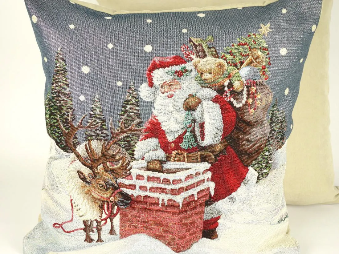 Poszewka świąteczna gobelinowa nr. 254 mikołaj z reniferem SlodkieSny 45x45 cm gobelin