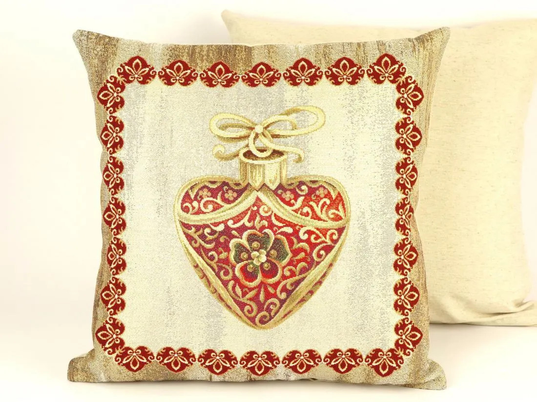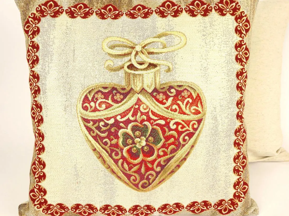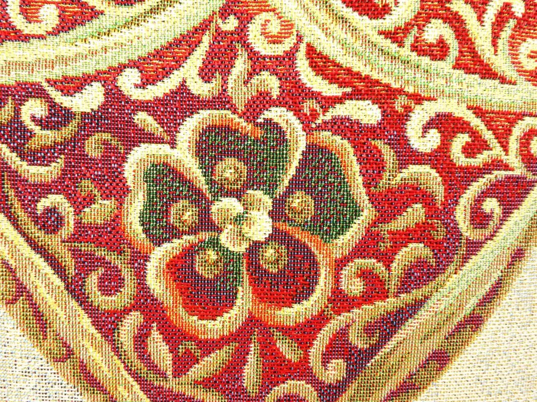 Dekoracyjna poszewka gobelinowa w rozmiarze 45x45 cm, została wykonana z tkaniny hiszpańskiej 25% bawełna, 70 % poliester, 5% poliakryl. Poszewka dwustronna - tkanina tkana żakardowa ze wzorem z jednej strony, druga strona jednobarwna, poszewka zapinana na zamek. Dodatkowym atutem poszewki jest złota nitka wpleciona w tkaninę gobelinową.Niepowtarzalne wzornictwo poszewki gobelinowej podkreśli wystrój każdego wnętrza. Jest to niezastąpiony element salonu lub sypialni który może odmienić każde wnętrze oraz magicznie podkreślić jego wystrój. Wzornictwo nawiązuje do tradycyjnych gobelinów które dawniej zdobiły ściany w domach. Zastosowana tkanina jest tkana, gruba, nie gniecie. Różnorodność wzorów na poszewkach gobelinowych zadowoli każdego kto pragnie aby w jego pomieszczeniu zagościł niepowtarzalny magiczny sielski klimat. Poszewka gobelinowa może być świetnym rozwiązaniem aby odmienić wnętrze jak również niezastąpionym pomysłem na prezent dla bliskiej osoby.