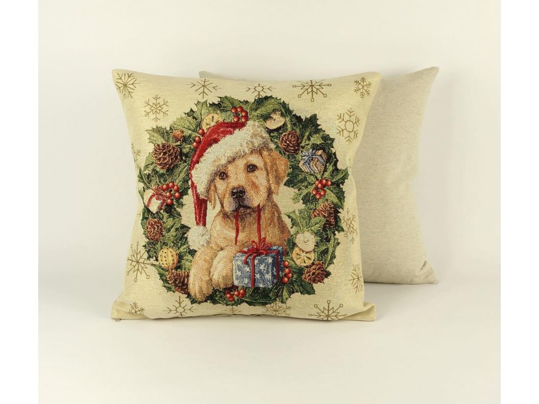 Poszewka świąteczna gobelinowa piesek w czapeczce nr. 434 SlodkieSny 45x45 cm gobelin