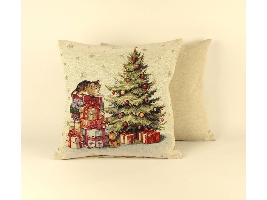 Poszewka świąteczna gobelinowa prezenty, kot SlodkieSny 45x45 cm gobelin
