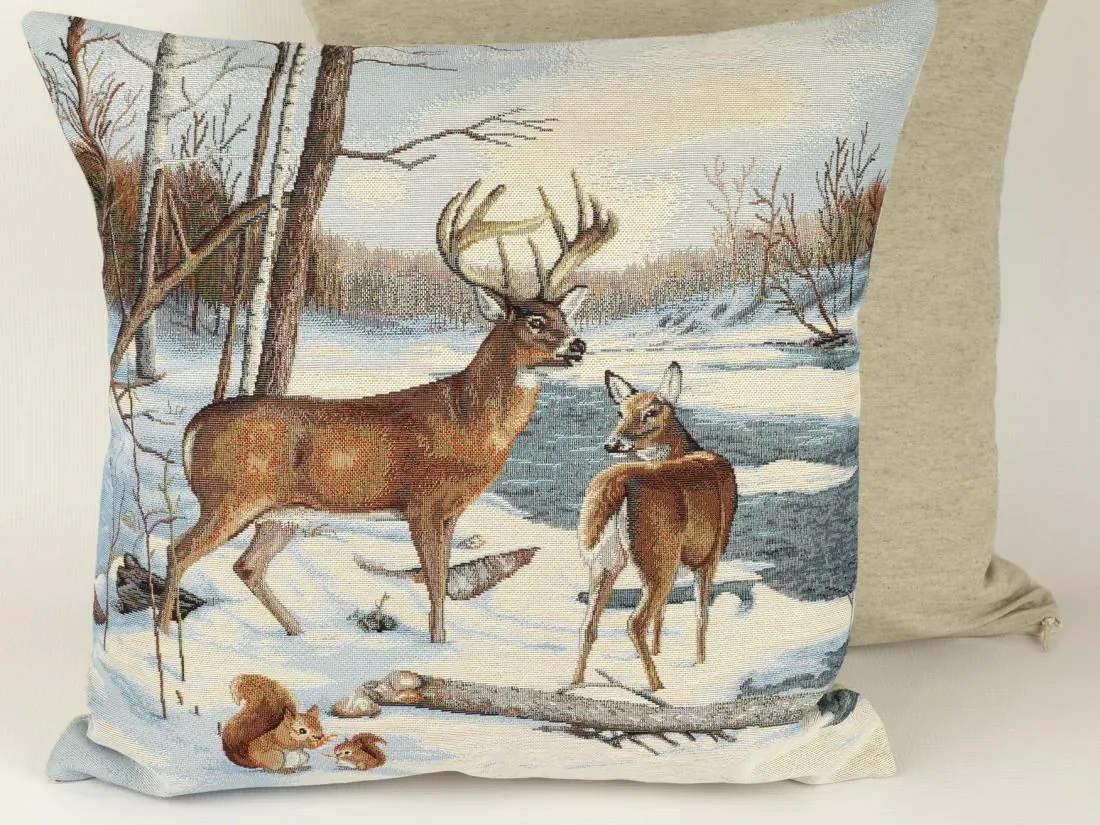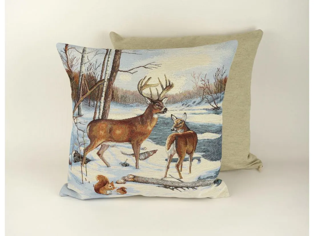 Poszewka świąteczna gobelinowa sarenka, jeleń zimą nr sw 290 SlodkieSny 45x45 cm gobelin