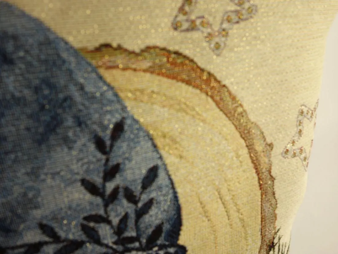 Dekoracyjna poszewka gobelinowa w rozmiarze 45x45 cm, została wykonana z tkaniny hiszpańskiej 25% bawełna, 70 % poliester, 5% poliakryl. Poszewka dwustronna - tkanina tkana żakardowa ze wzorem z jednej strony, druga strona jednobarwna, poszewka zapinana na zamek. Dodatkowym atutem poszewki jest złota nitka wpleciona w tkaninę gobelinową.Niepowtarzalne wzornictwo poszewki gobelinowej podkreśli wystrój każdego wnętrza. Jest to niezastąpiony element salonu lub sypialni który może odmienić każde wnętrze oraz magicznie podkreślić jego wystrój. Wzornictwo nawiązuje do tradycyjnych gobelinów które dawniej zdobiły ściany w domach. Zastosowana tkanina jest tkana, gruba, nie gniecie. Różnorodność wzorów na poszewkach gobelinowych zadowoli każdego kto pragnie aby w jego pomieszczeniu zagościł niepowtarzalny magiczny sielski klimat. Poszewka gobelinowa może być świetnym rozwiązaniem aby odmienić wnętrze jak również niezastąpionym pomysłem na prezent dla bliskiej osoby.