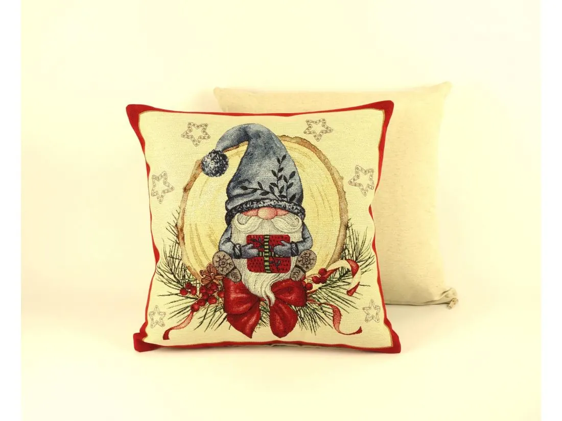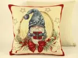 Poszewka świąteczna gobelinowa skrzat z prezentem nr. 255 a SlodkieSny 45x45 cm gobelin złota nitka