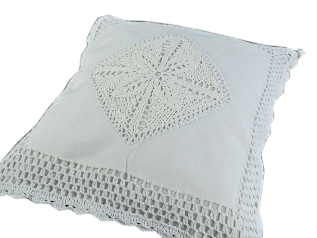 Poszewka dekoracyjna szydełko w rozmiarze 40x40 w kolorze białym.