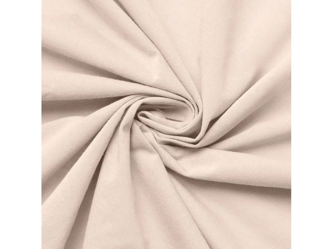 Prześcieradło w kolorze jasno beżowym, wykonane z bawełnianej dzianiny jersey, to doskonały wybór dla osób ceniących sobie komfort i wysoką jakość. Wykonane w 100% z naturalnej bawełny, zapewnia miękkość i oddychalność, co gwarantuje przyjemne użytkowanie. Elastyczna gumka wokół prześcieradła sprawia, że idealnie dopasowuje się do materaca, eliminując problem przesuwania się materiału podczas snu.