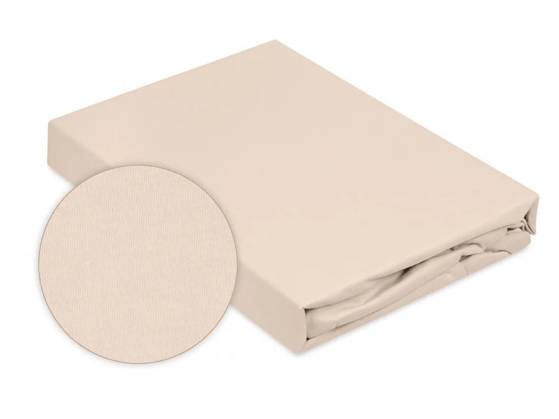 Prześcieradło jersey 140x200 + 30 cm z gumką jasno beżowe matex 015 na wysoki materac