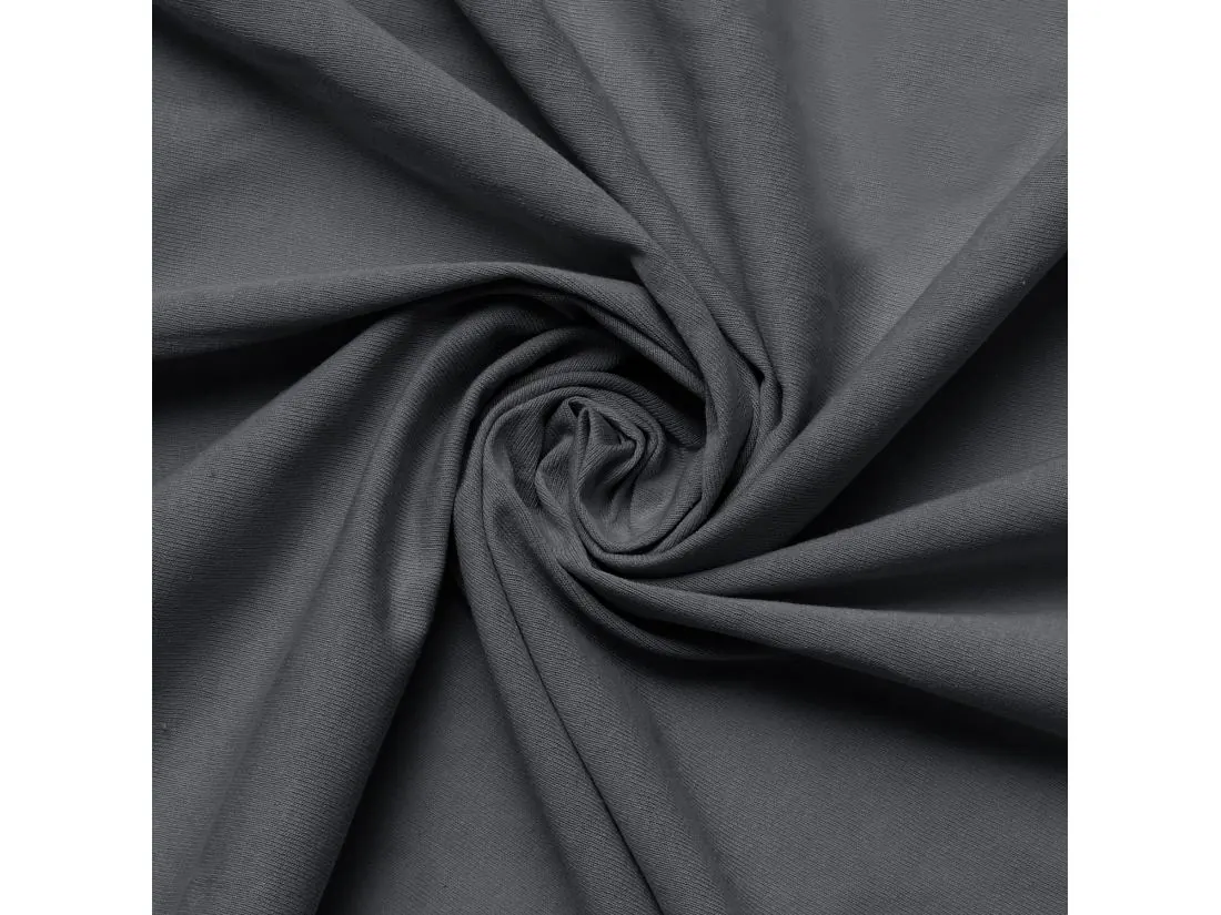 Prześcieradło w kolorze ciemno popielatym, wykonane z bawełnianej dzianiny jersey, to doskonały wybór dla osób ceniących sobie komfort i wysoką jakość. Wykonane w 100% z naturalnej bawełny, zapewnia miękkość i oddychalność, co gwarantuje przyjemne użytkowanie. Elastyczna gumka wokół prześcieradła sprawia, że idealnie dopasowuje się do materaca, eliminując problem przesuwania się materiału podczas snu.