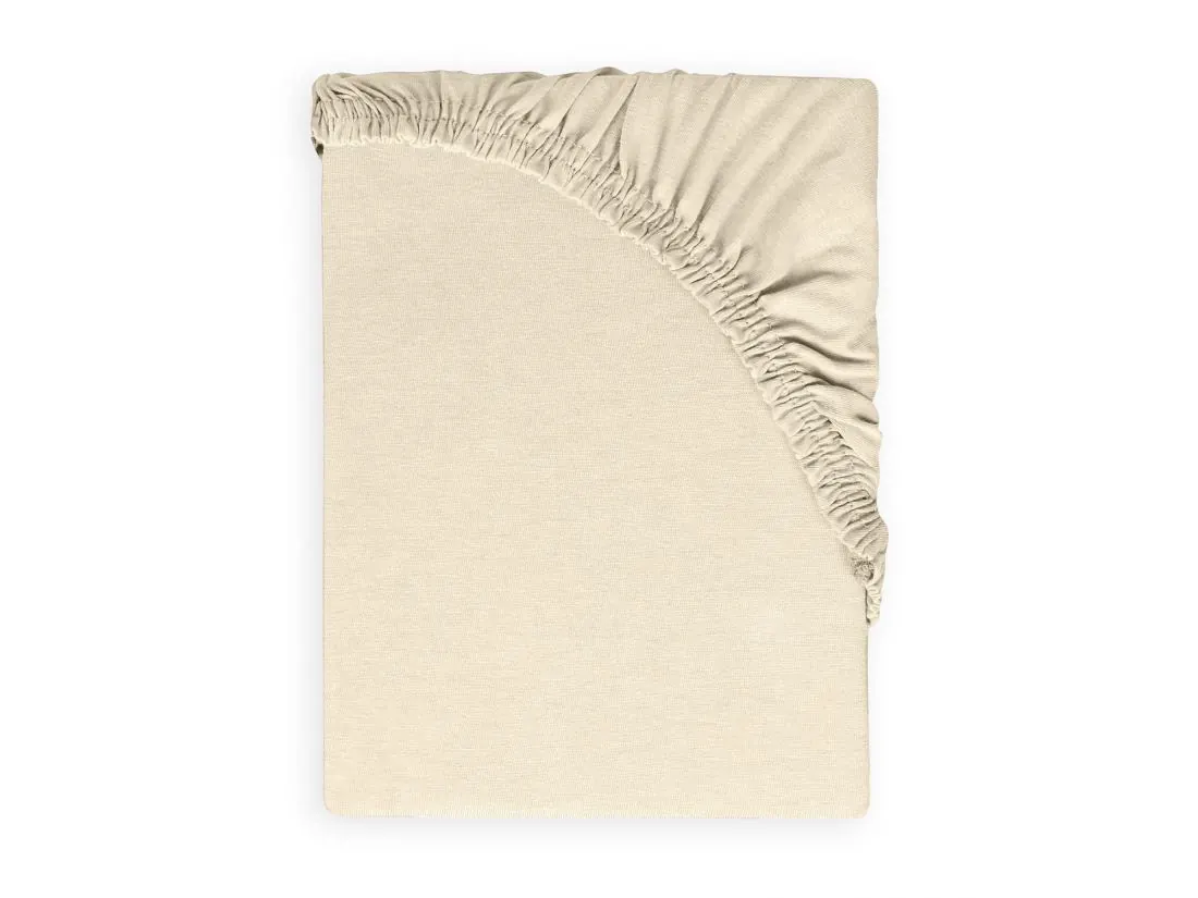 Prześcieradło w kolorze kremowym, wykonane z bawełnianej dzianiny jersey, to doskonały wybór dla osób ceniących sobie komfort i wysoką jakość. Wykonane w 100% z naturalnej bawełny, zapewnia miękkość i oddychalność, co gwarantuje przyjemne użytkowanie. Elastyczna gumka wokół prześcieradła sprawia, że idealnie dopasowuje się do materaca, eliminując problem przesuwania się materiału podczas snu.
