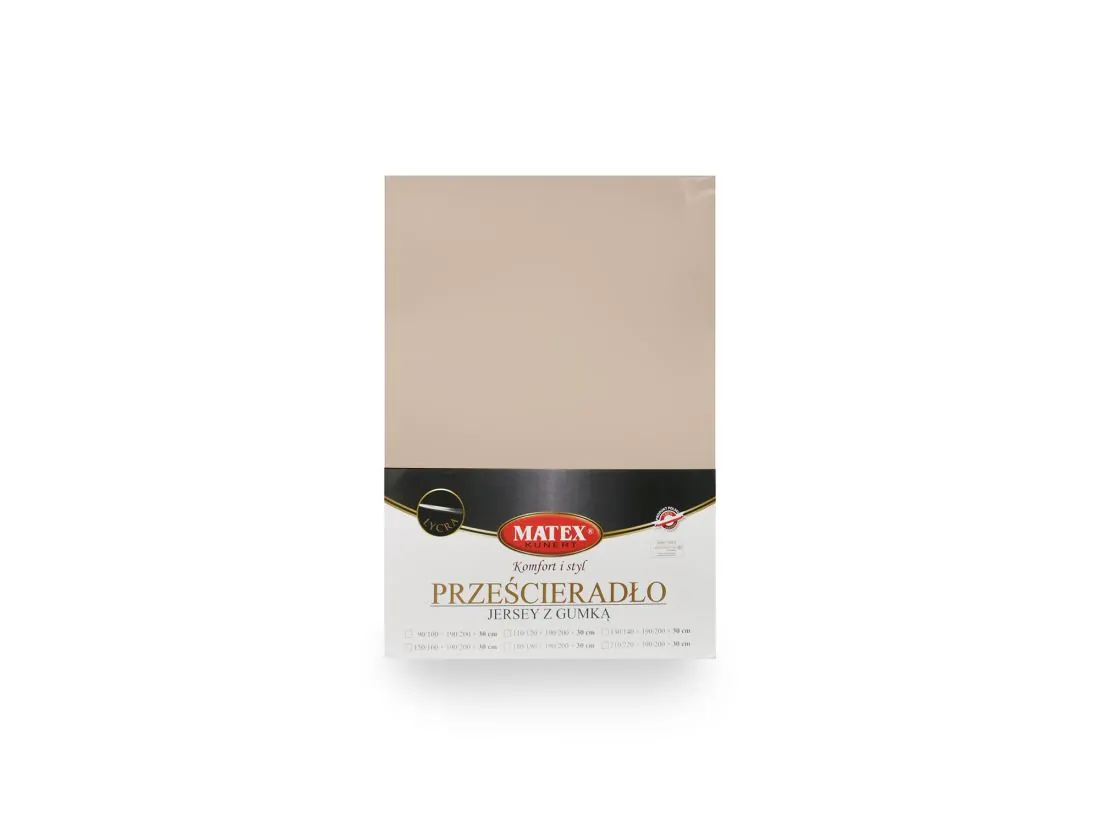 Prześcieradło jersey z laycrą 120x200 + 30 cm z gumką beżowe lycra