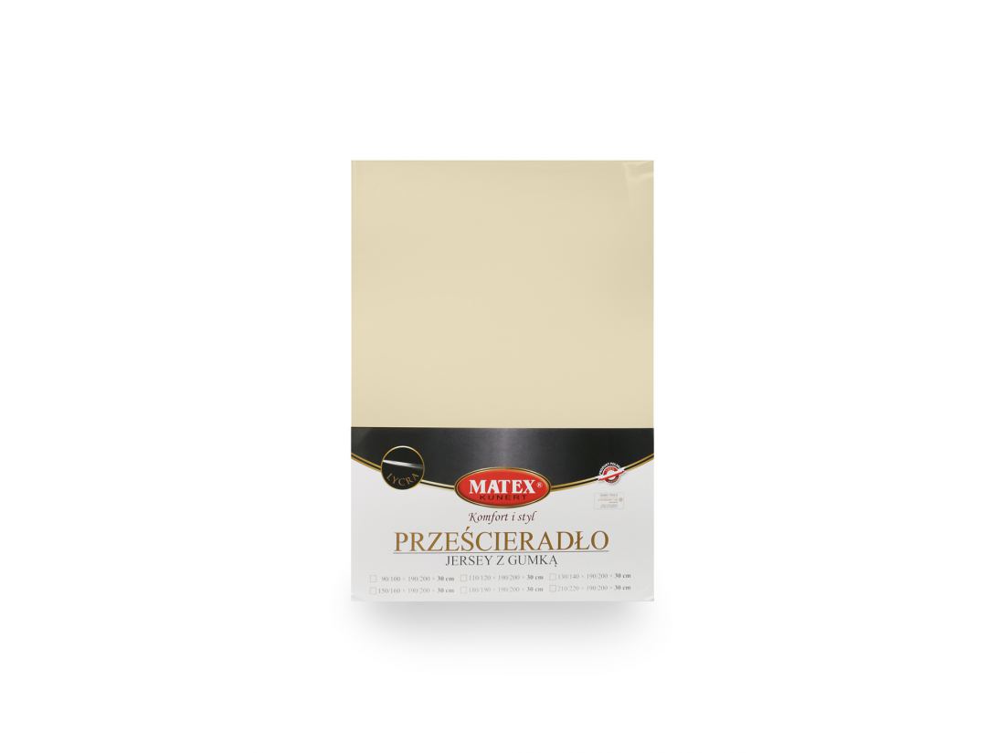 Prześcieradło jersey z laycrą 180x200 + 30 cm z gumką kremowe lycra