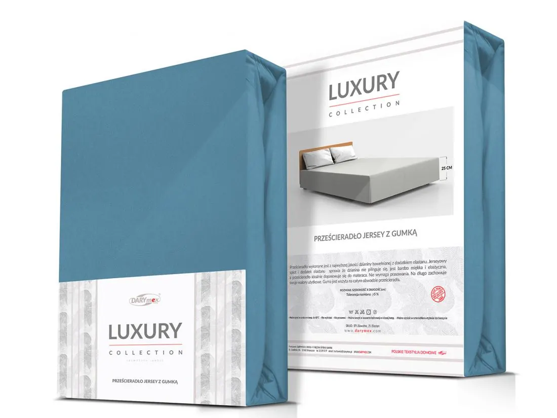 Prześcieradło Premium Jersey elastan 160x200 z gumką luksusowe Blue Luxury Niebieski