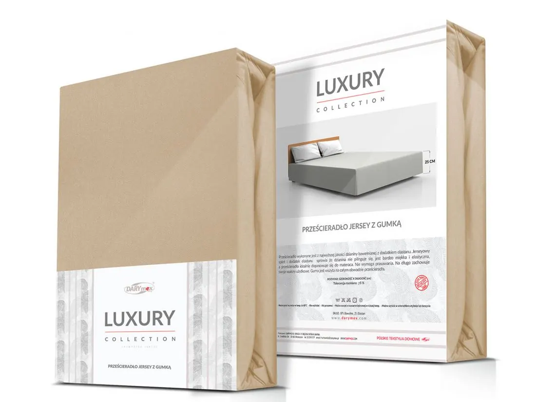 Prześcieradło Jersey elastan 180x200 z gumką Piaskowy Luxury jasny beż Sand 30