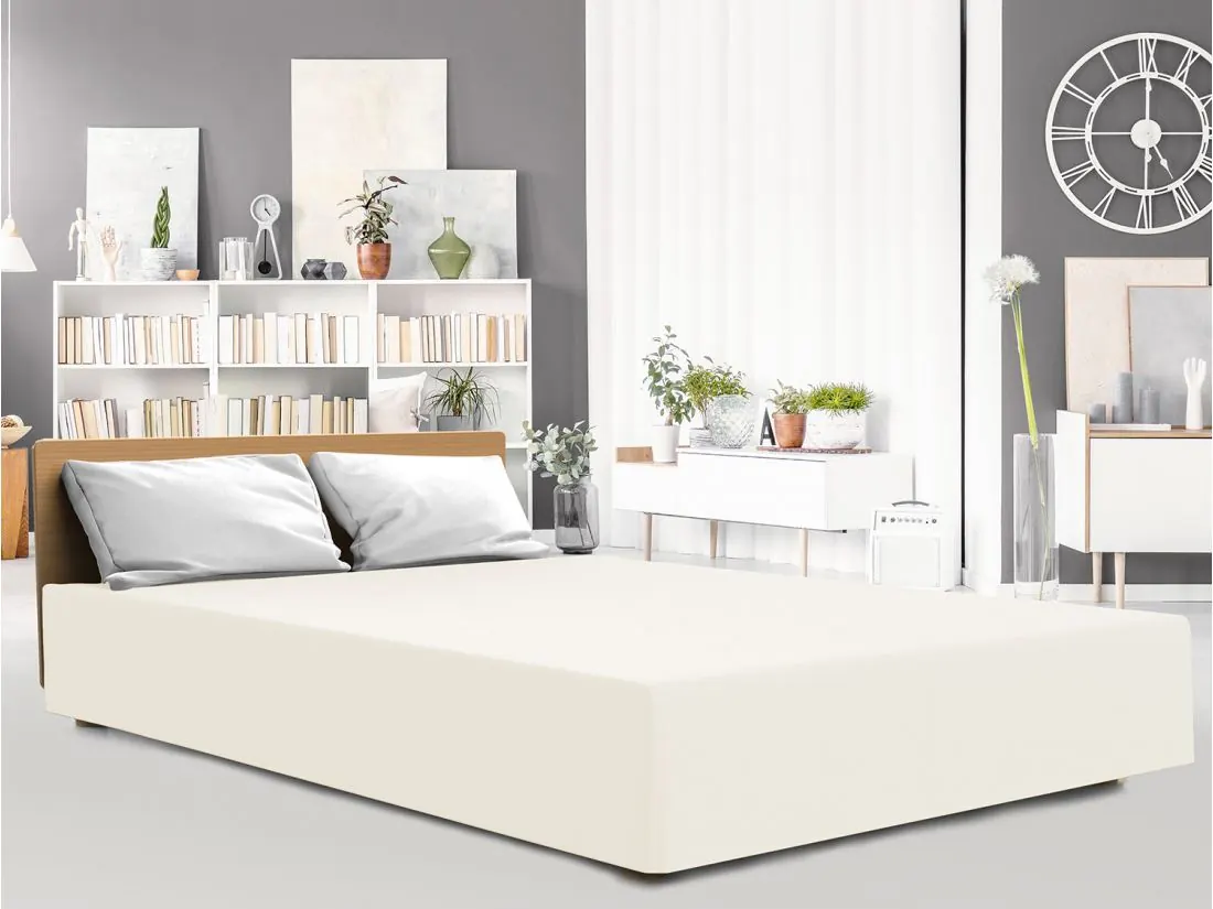 Jednobarwne prześcieradło Jersey elastan z gumką w rozmiarze 220x200 marki Darymex zostało wykonana z najwyższej jakości dzianiny bawełnianej z dodatkiem elastanu o wysokiej gramaturze bo aż 160g/m2 w kolorze jasno kremowym.