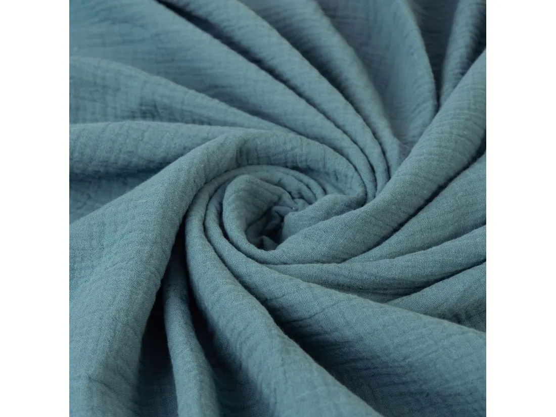 Muślin - to tkanina która również można spotkać pod nazwą " double gaze"- to tkanina bawełniana o splocie przypominającą mięsista tetrę. Posiada charakterystyczne gofrowanie-marszczenie. Jest delikatna, miękka, przewiewna.