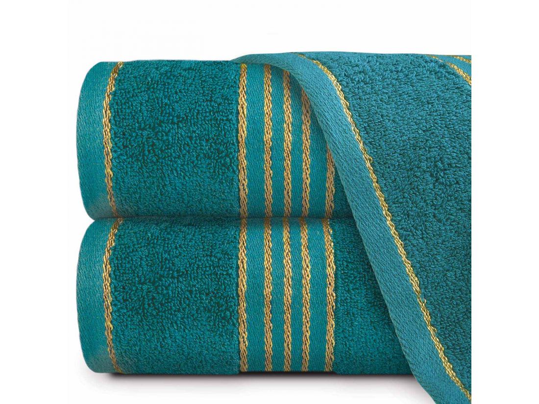 Ręcznik 30x50 bawełniany do rąk Tiwano ciemny turkus ze złotą bordiurą