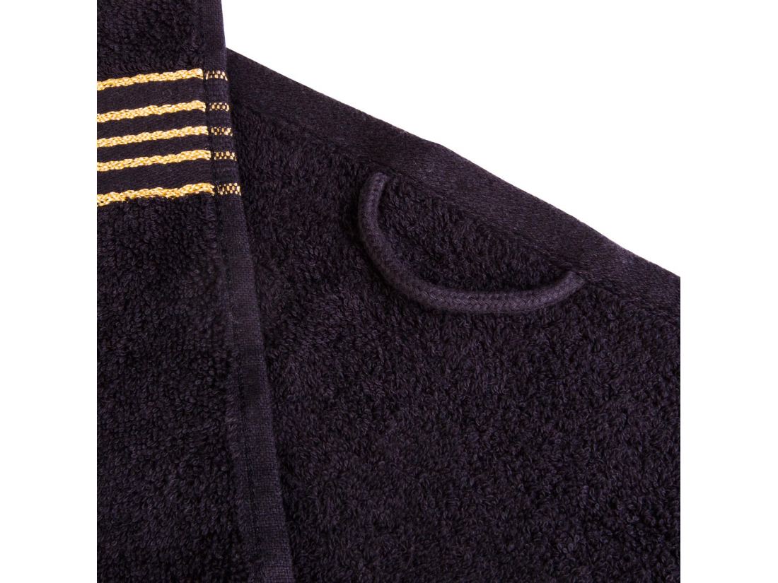 Ciemna kolorystyka została uzupełniona ozdobną bordiurą ze złotą nicią. Ten subtelny akcent nadaje ręcznikowi wyjątkowego charakteru, idealnie komponując się z klasycznymi i nowoczesnymi wnętrzami łazienek.