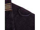 Ciemna kolorystyka została uzupełniona ozdobną bordiurą ze złotą nicią. Ten subtelny akcent nadaje ręcznikowi wyjątkowego charakteru, idealnie komponując się z klasycznymi i nowoczesnymi wnętrzami łazienek.
