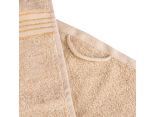 Delikatna beżowa kolorystyka została uzupełniona ozdobną bordiurą ze złotą nicią. Ten subtelny akcent nadaje ręcznikowi wyjątkowego charakteru, idealnie komponując się z klasycznymi i nowoczesnymi wnętrzami łazienek.